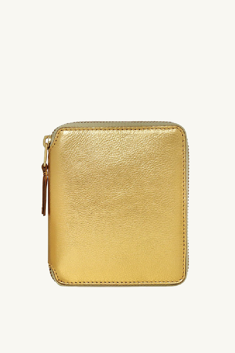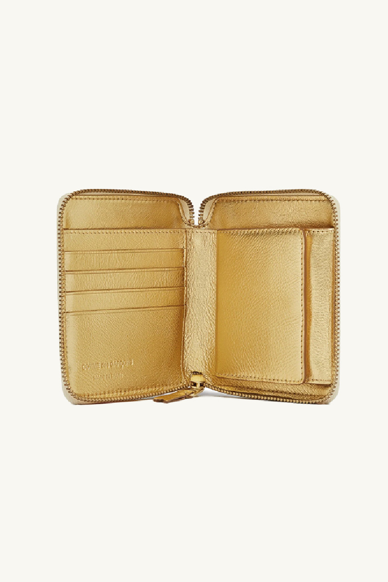 Grand porte-monnaie de la marque Comme Des Garçons, gold, en cuir de vachette effet craquelé.