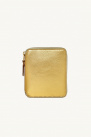 Grand porte-monnaie de la marque Comme Des Garçons, doré, en cuir de vachette effet craquelé.