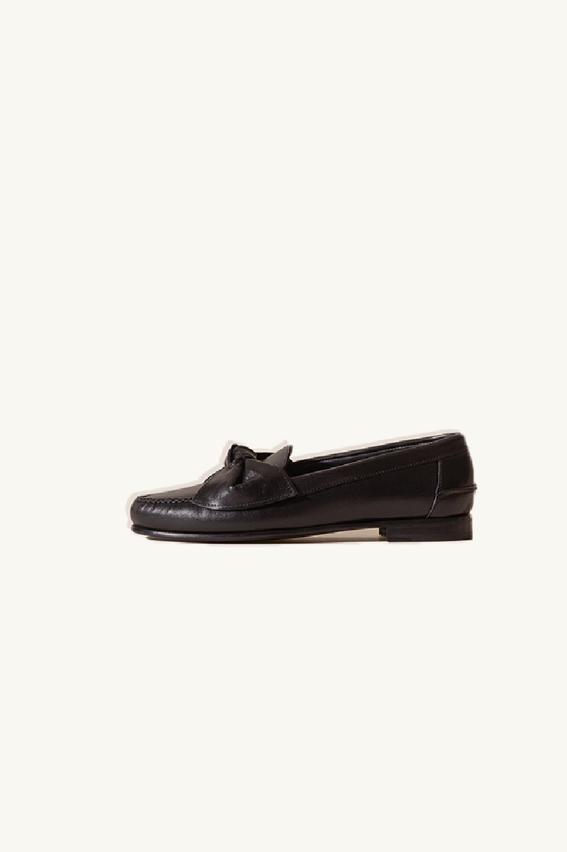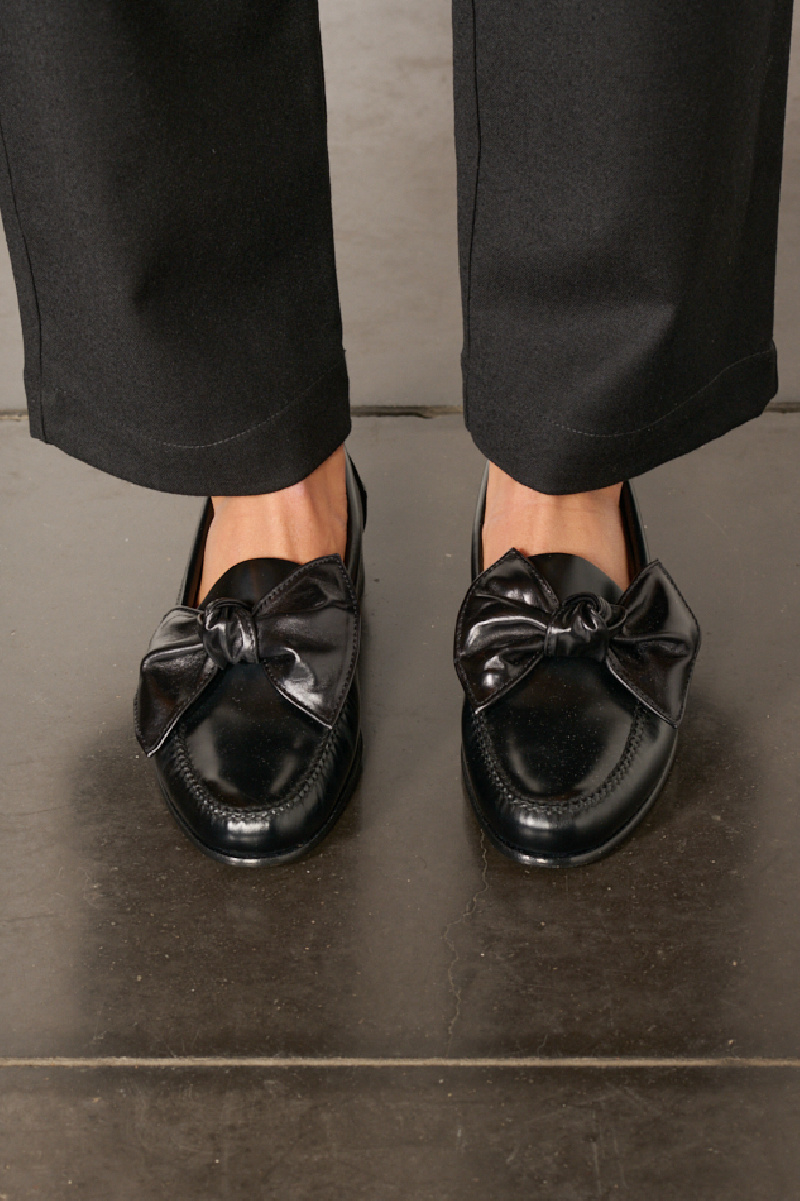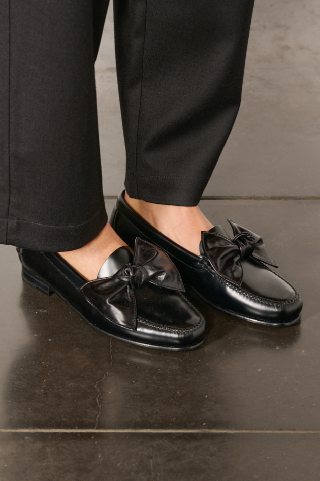 Mocassins confectionnés manière artisanale en cuir de veau brillant vieilli, de la marque Hereu.