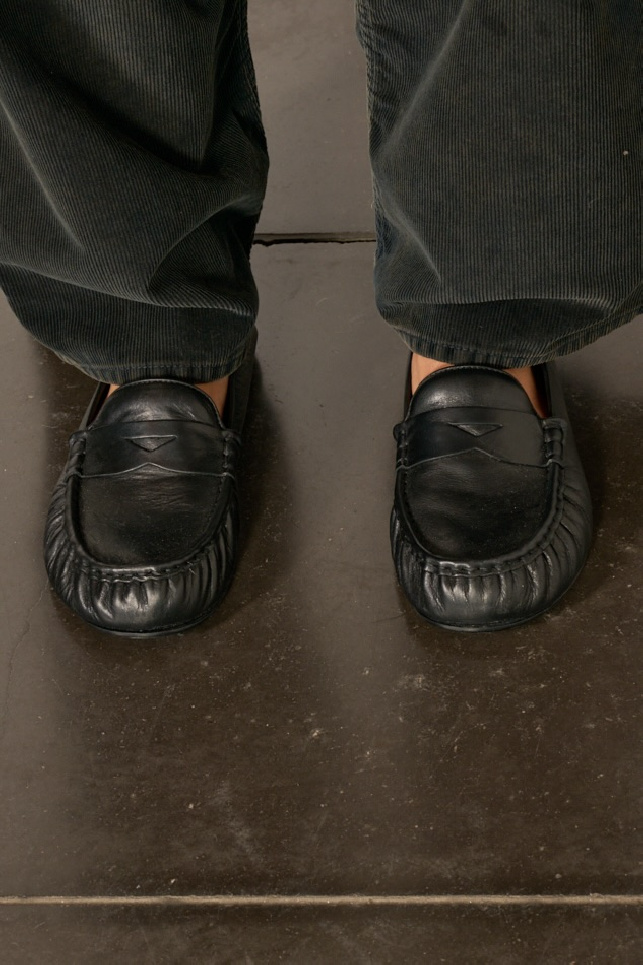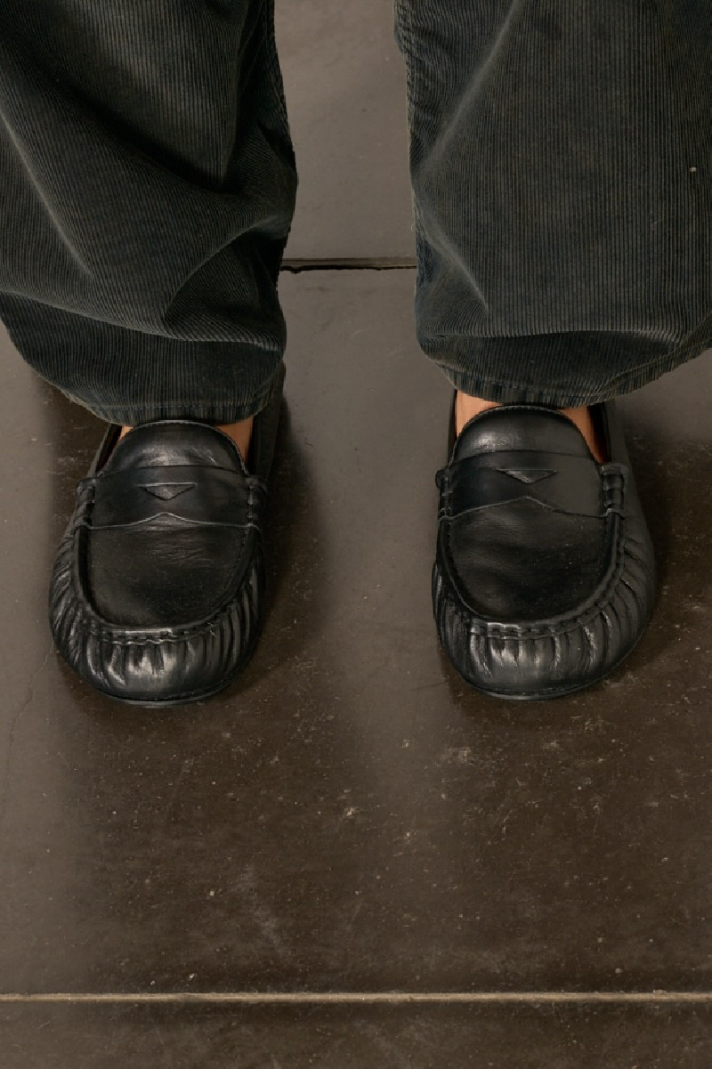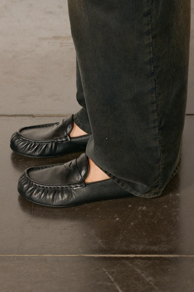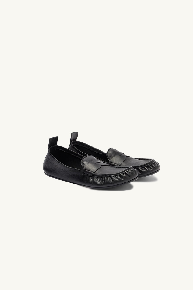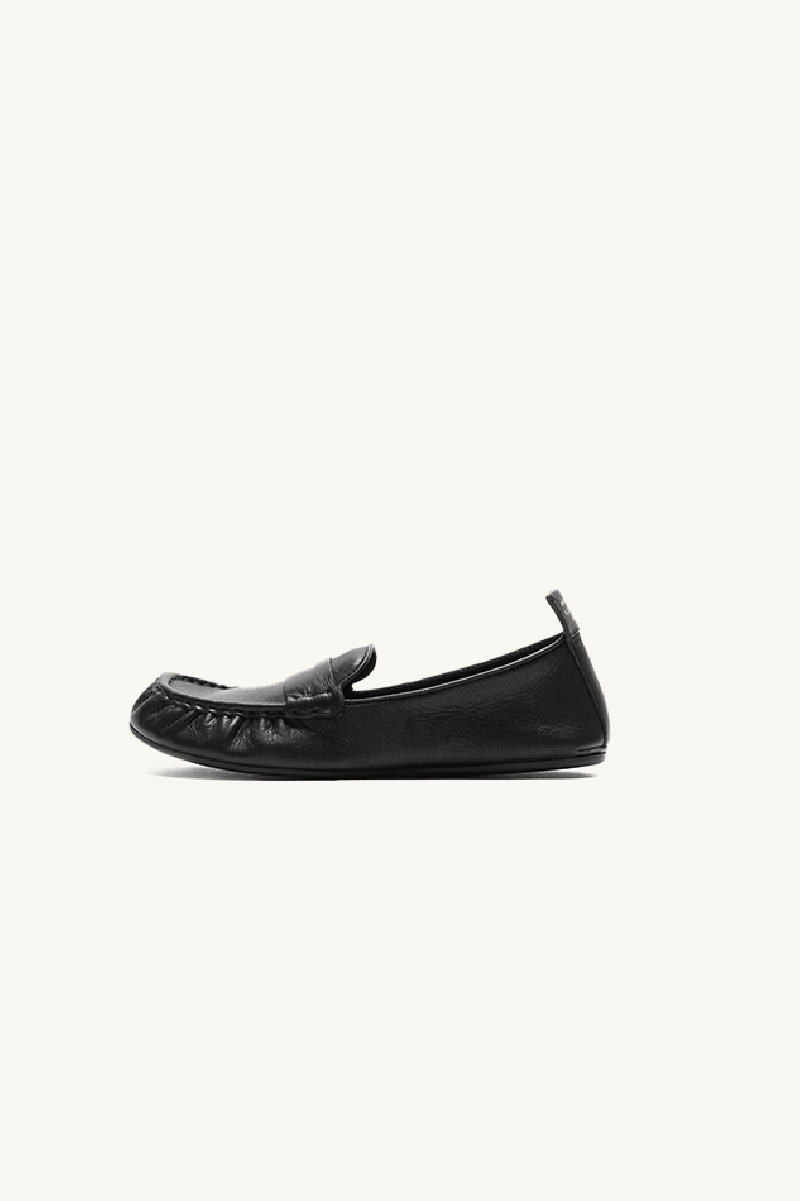 Mocassins en cuir de veau huilé et souple noir, de la marque Acne Studios.