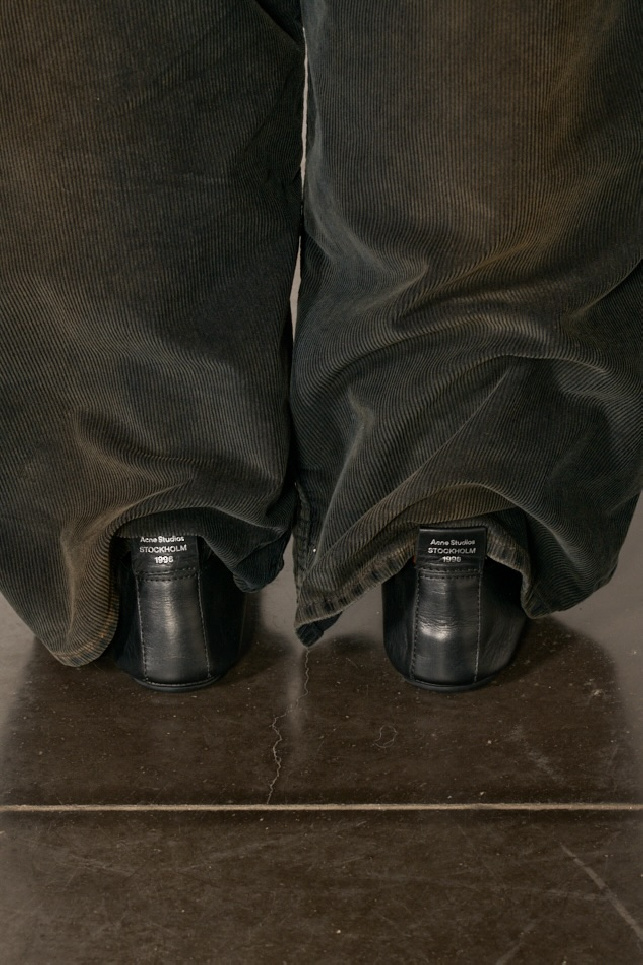 Ils présentent un bout rond légèrement froncé, une bride de type saddle sur le dessus ainsi qu'une étiquette en cuir embossée à l’arrière, ornée de l’inscription argentée « Acne Studios 1996 ».