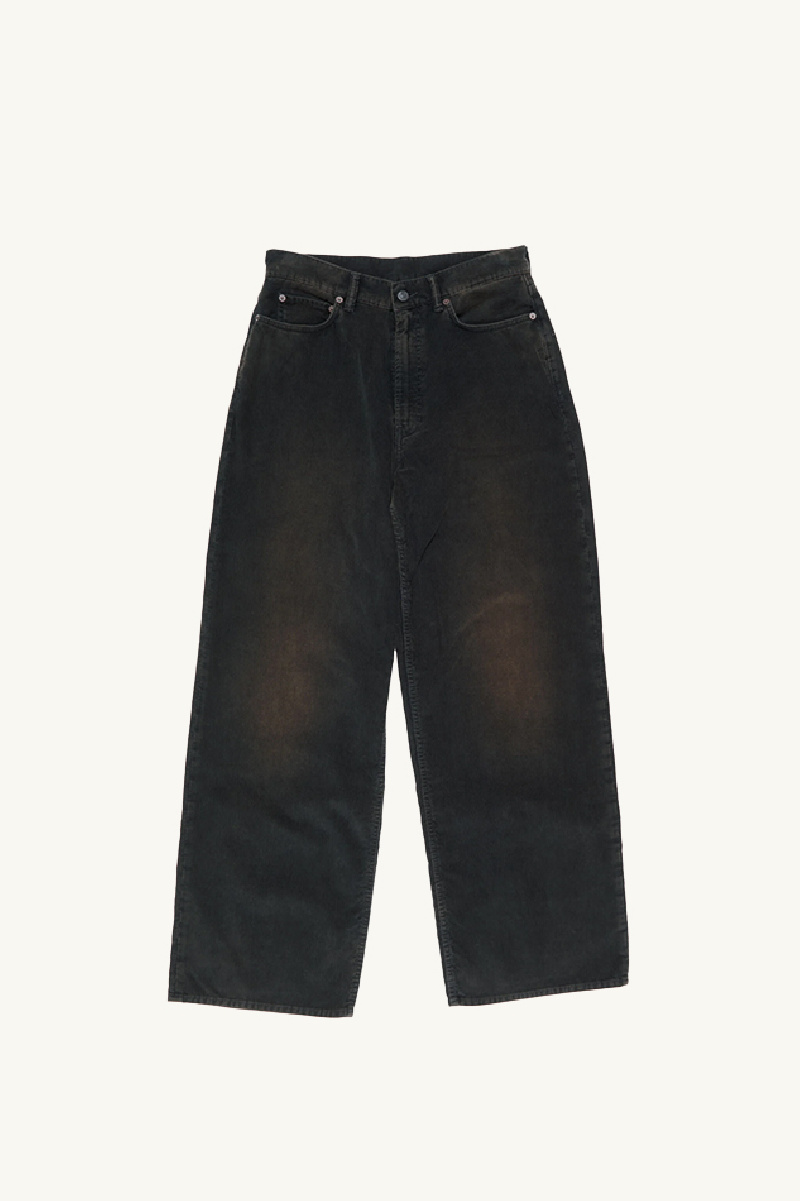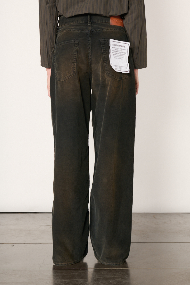 Pantalon en velours à fines côtes noir, au délavage vintage, confectionné en coton biologique, de la marque Acne Studios.