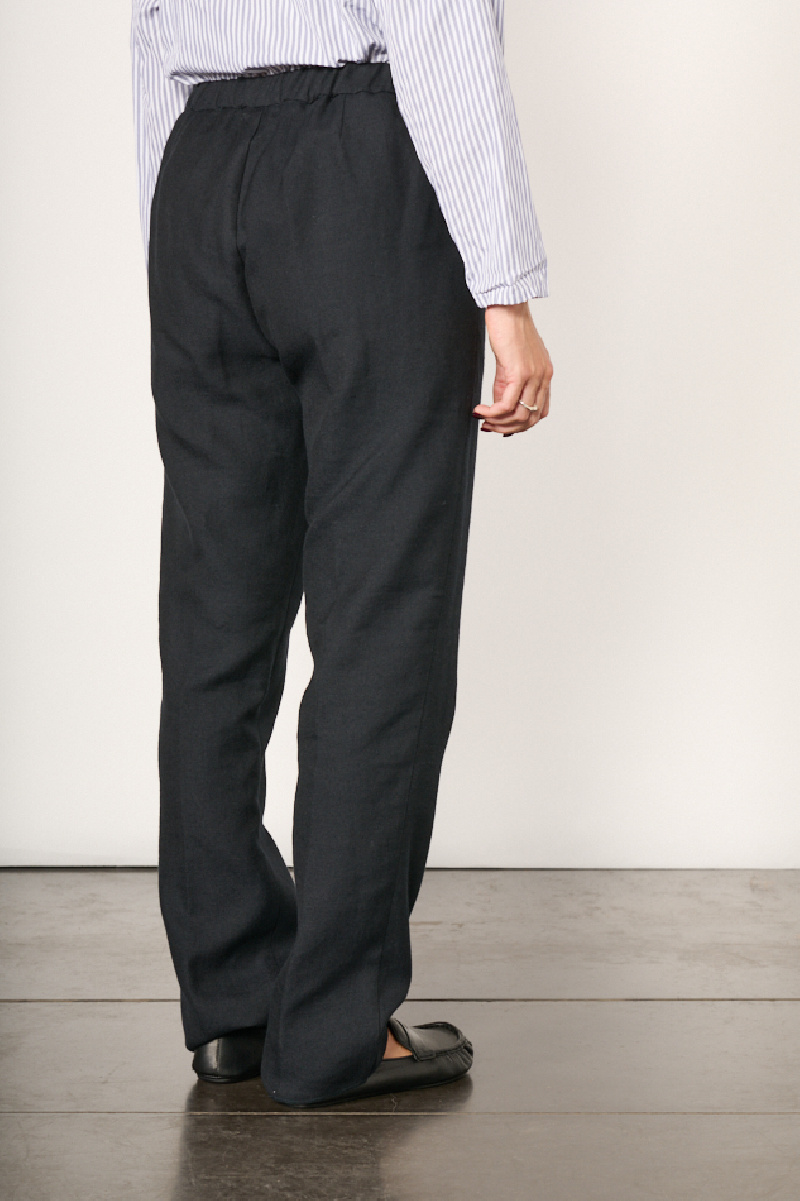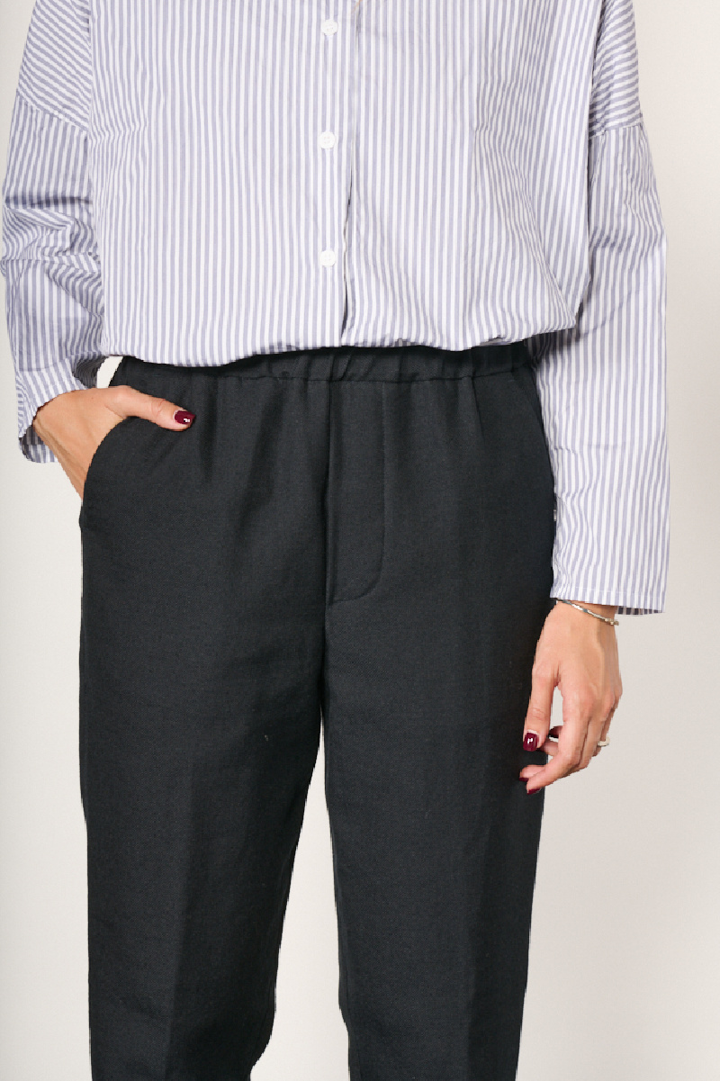 Pantalon Easy confectionné en mélange de laine et de lin noir de la marque Bergfabel.