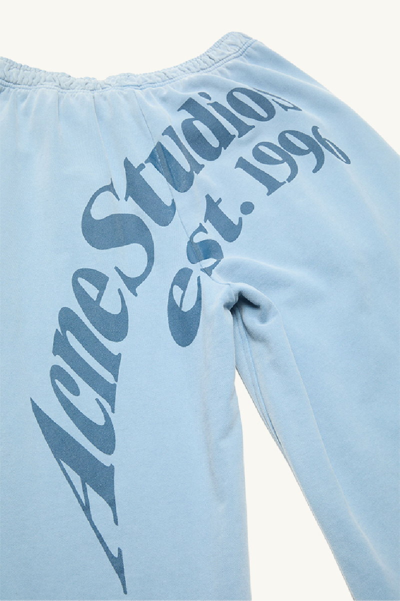 Pantalon décontracté de type survêtement confectionné en molleton de coton biologique bleu vintage, de la marque Acne Studios.