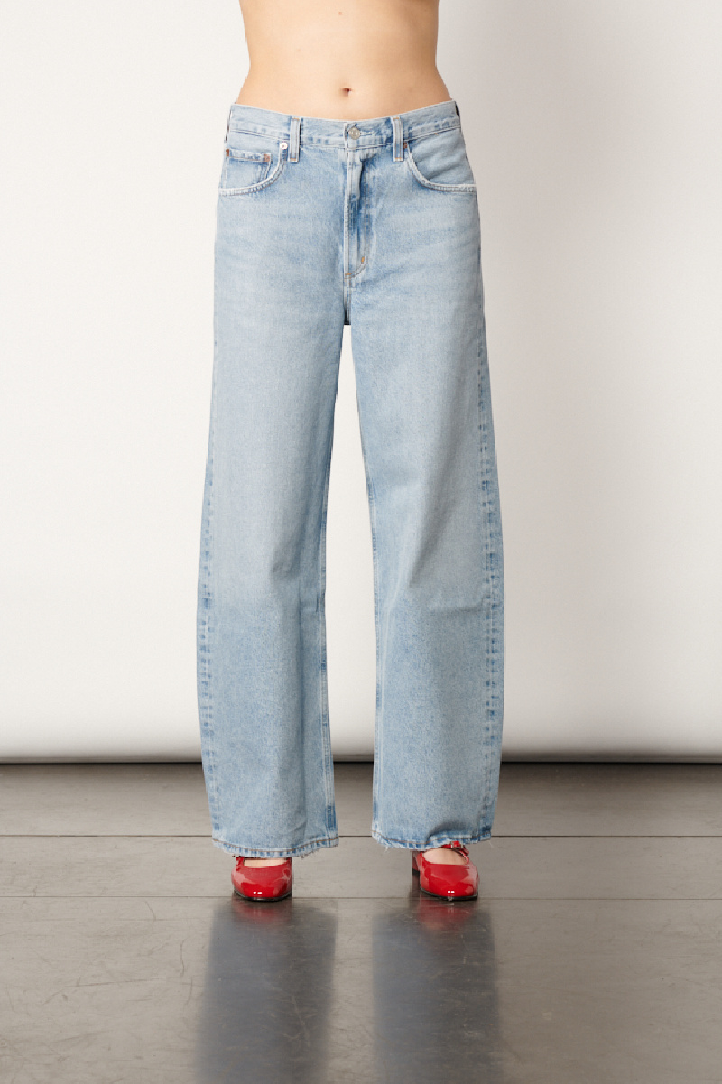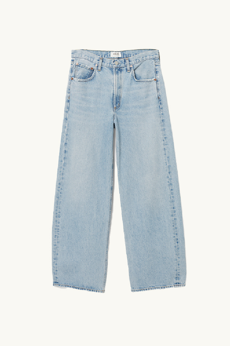 Le Jean Curve Agolde en coupe évasée et taille mi-haute, colorie force, (bleu clair) offre une silhouette mode et confortable.