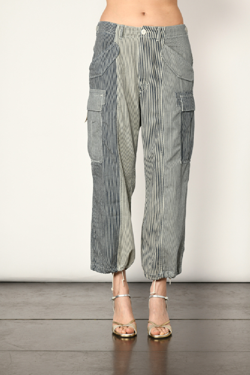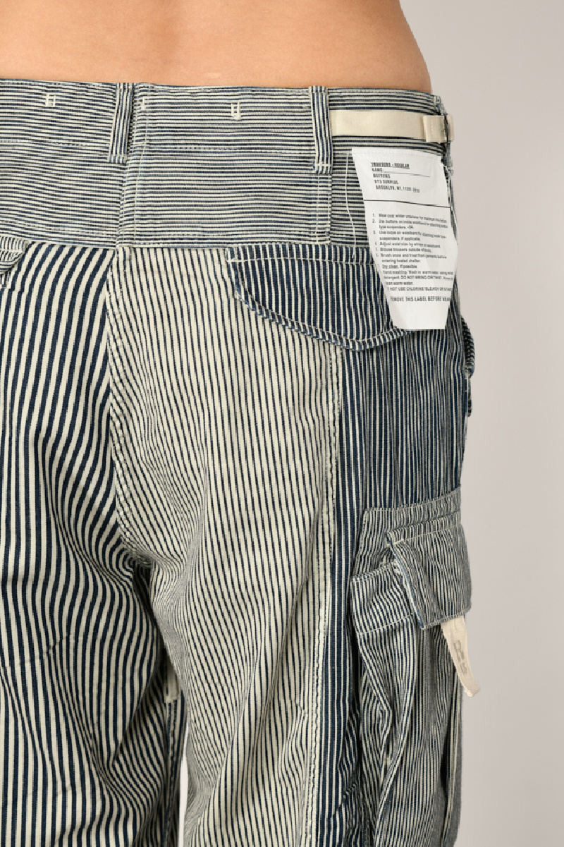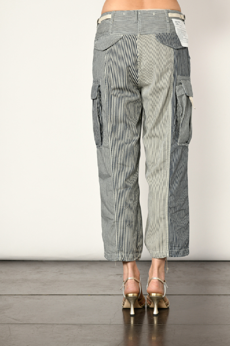 Pantalon Cargo, en coton, de couleur denim, à rayures bleues marine et blanches, de la marque R13.