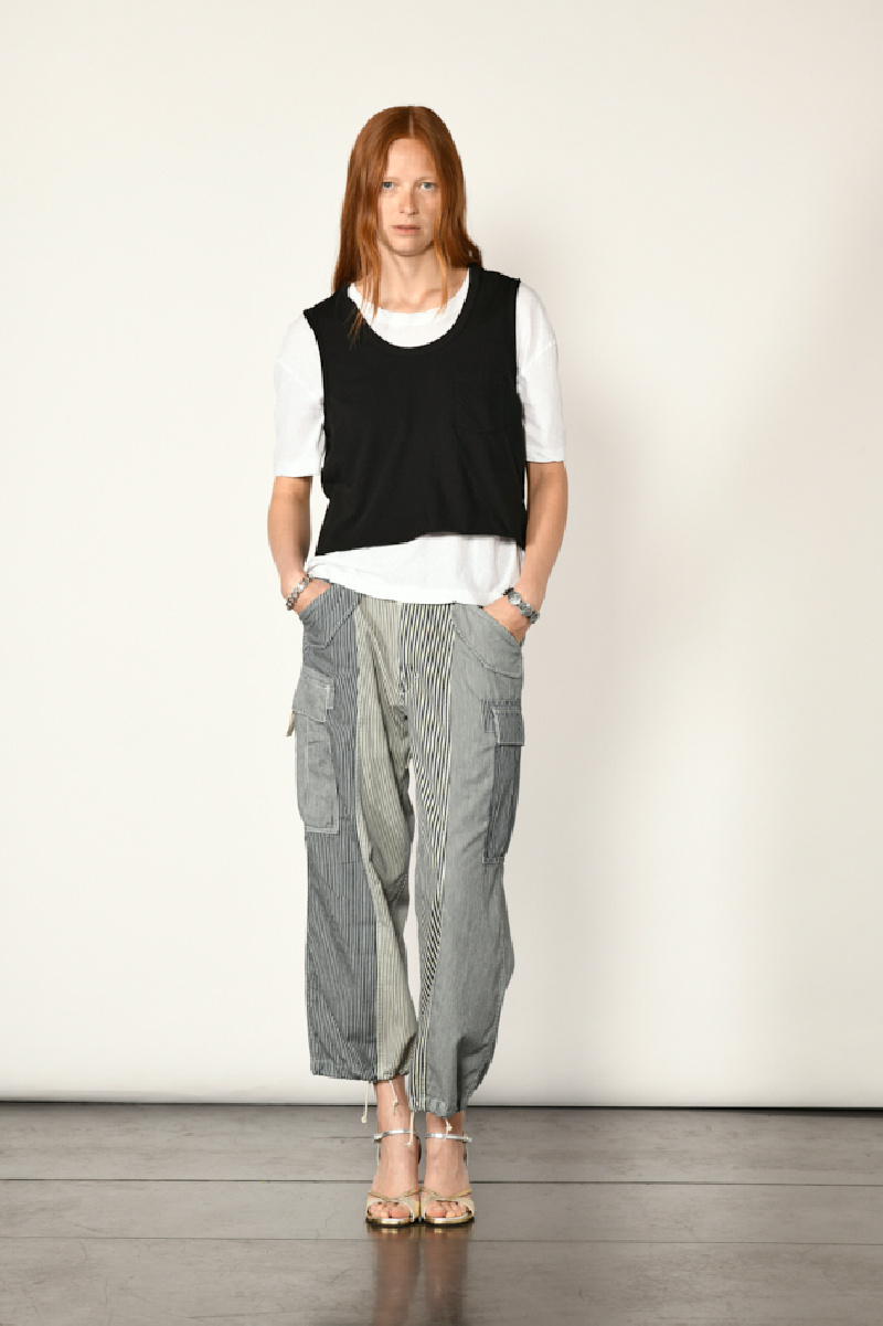 Une pièce aux influences workwear revisitées dans une palette rayée « Multi stripe railroad ».