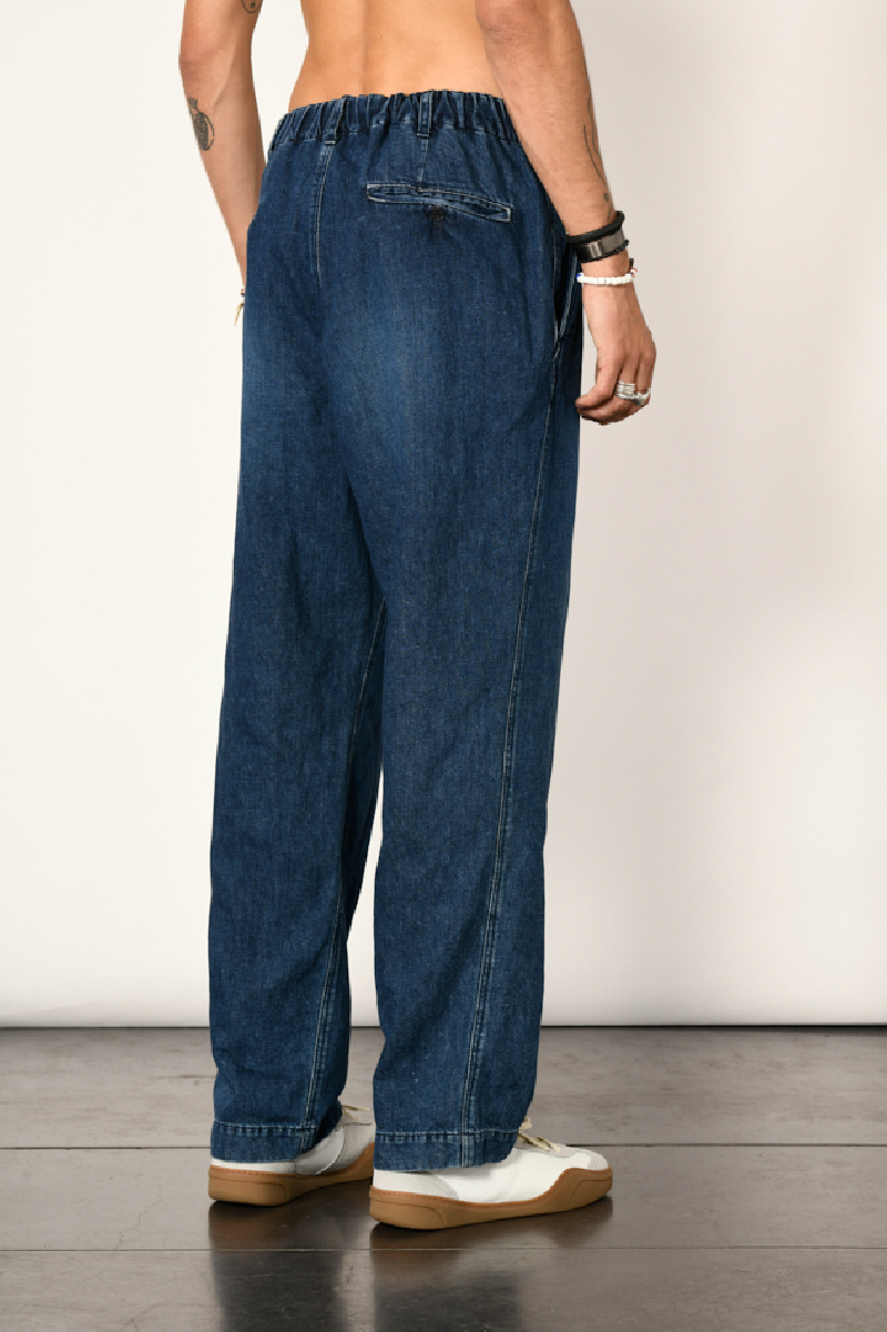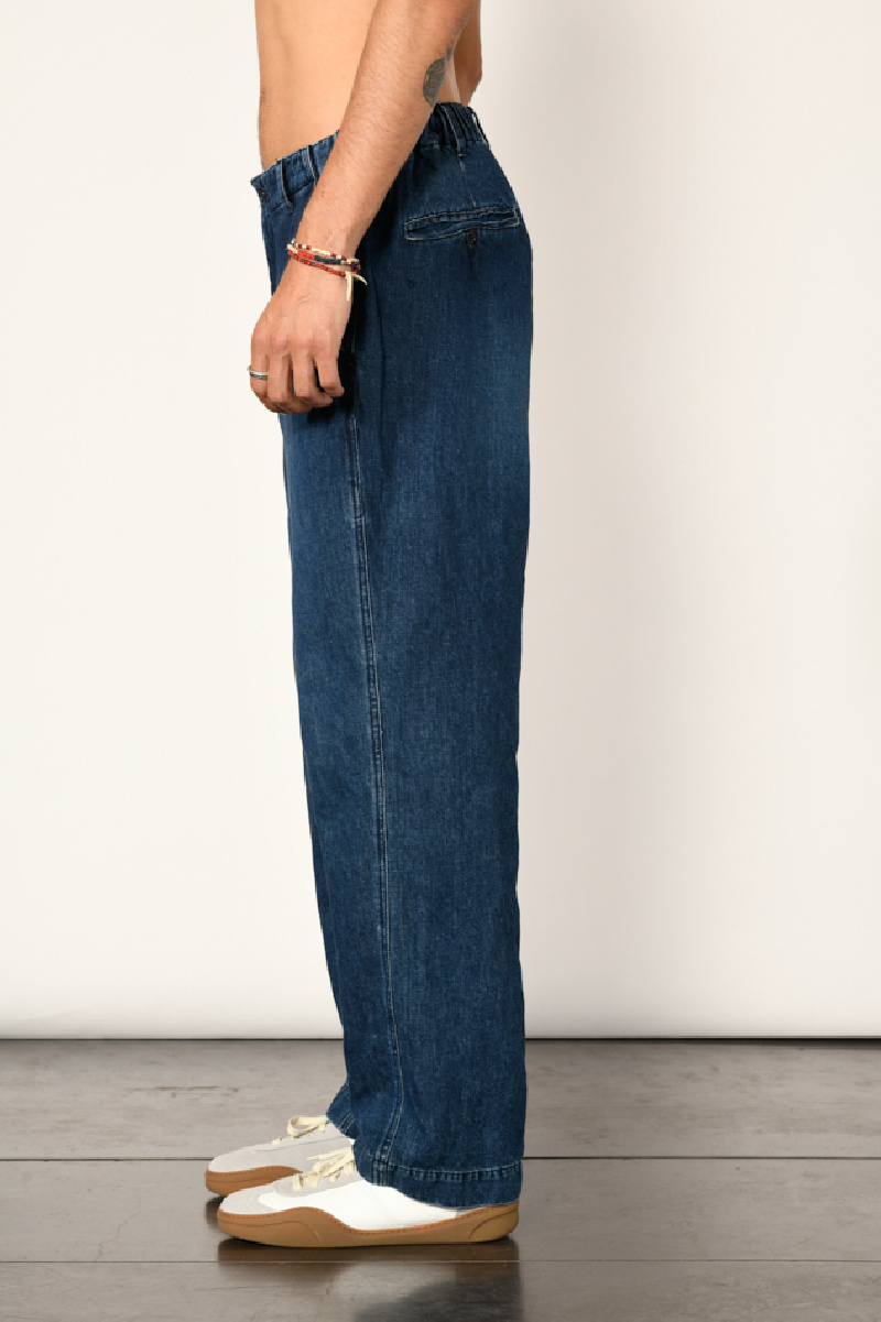Jean baggy en mélange de coton et lin de couleur indigo, de la marque Sage de Crêt.