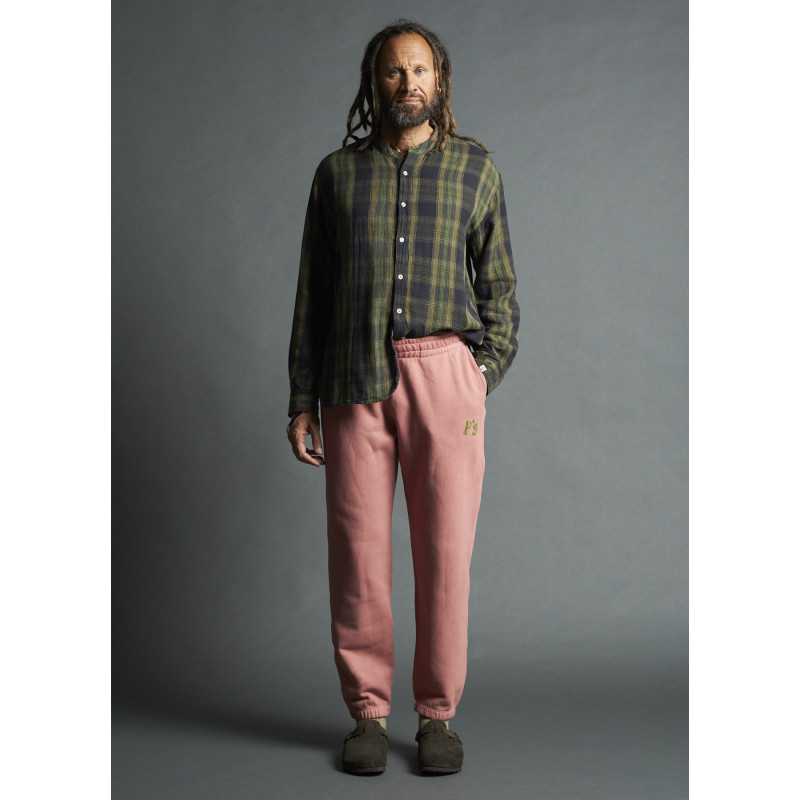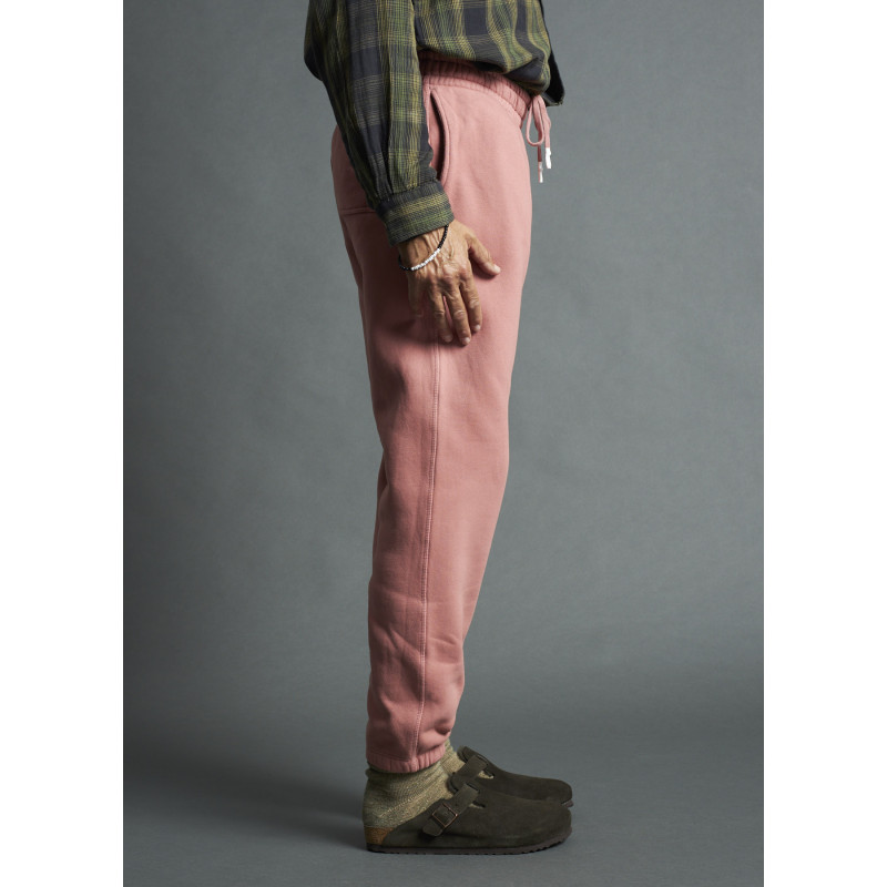Jogging President's en coton couleur vieux rose, cordon de serrage réglable à la taille, poches en biais latérales et poche plaquée à l'arrière, intérieur duveteux, ourlet élastique.