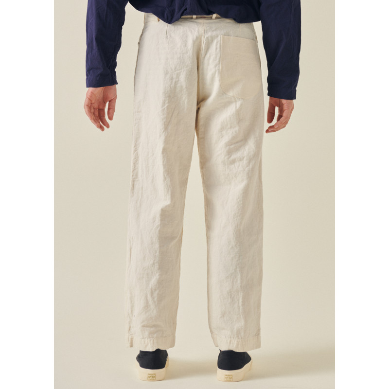 Pantalon Casey Casey écru, coupe oversize, décontracté, poches latérales profonde, multiples passants, fermeture pas bouton et zip sous patte, poche arrière, ourlet droit.