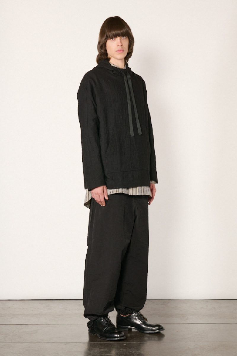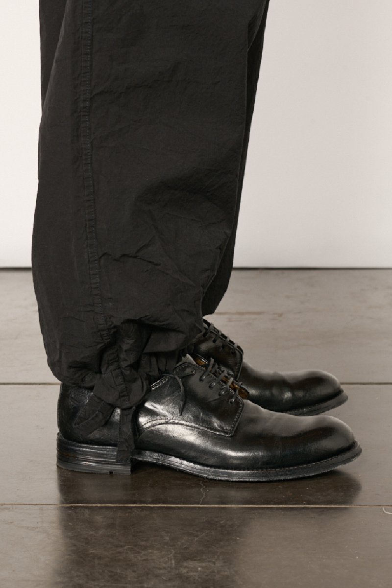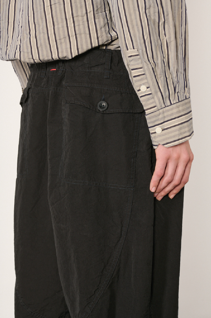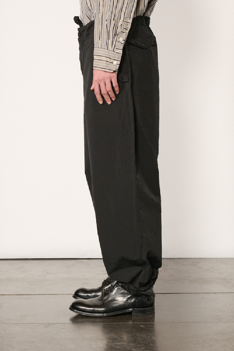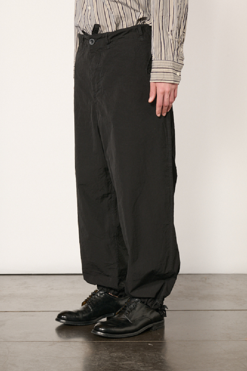 Pantalon Abel confectionné en coton Paper Cot noir à l’effet froissé, de la marque Casey Casey.