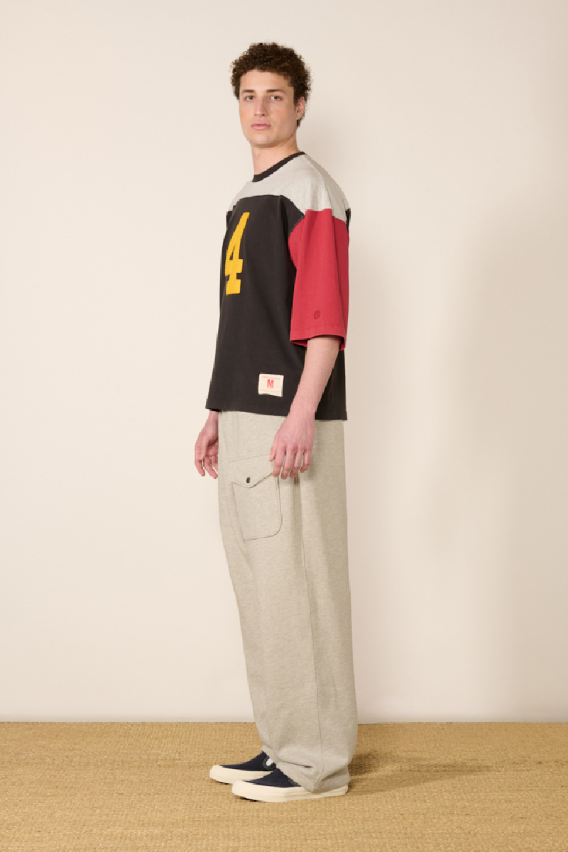 Il offre une coupe ample avec une fourche basse, une ceinture élastiquée avec cordon de serrage, présent également au niveau de l’ourlet, des poches latérales dans les coutures ainsi qu’une poche à rabat sur l’avant et l’arrière.