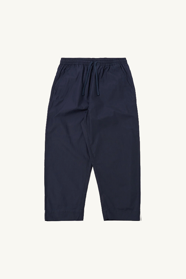 Pantalon Judo confectionné en popeline de coton bleu marine au toucher doux , non doublé, de la marque Universal Works.