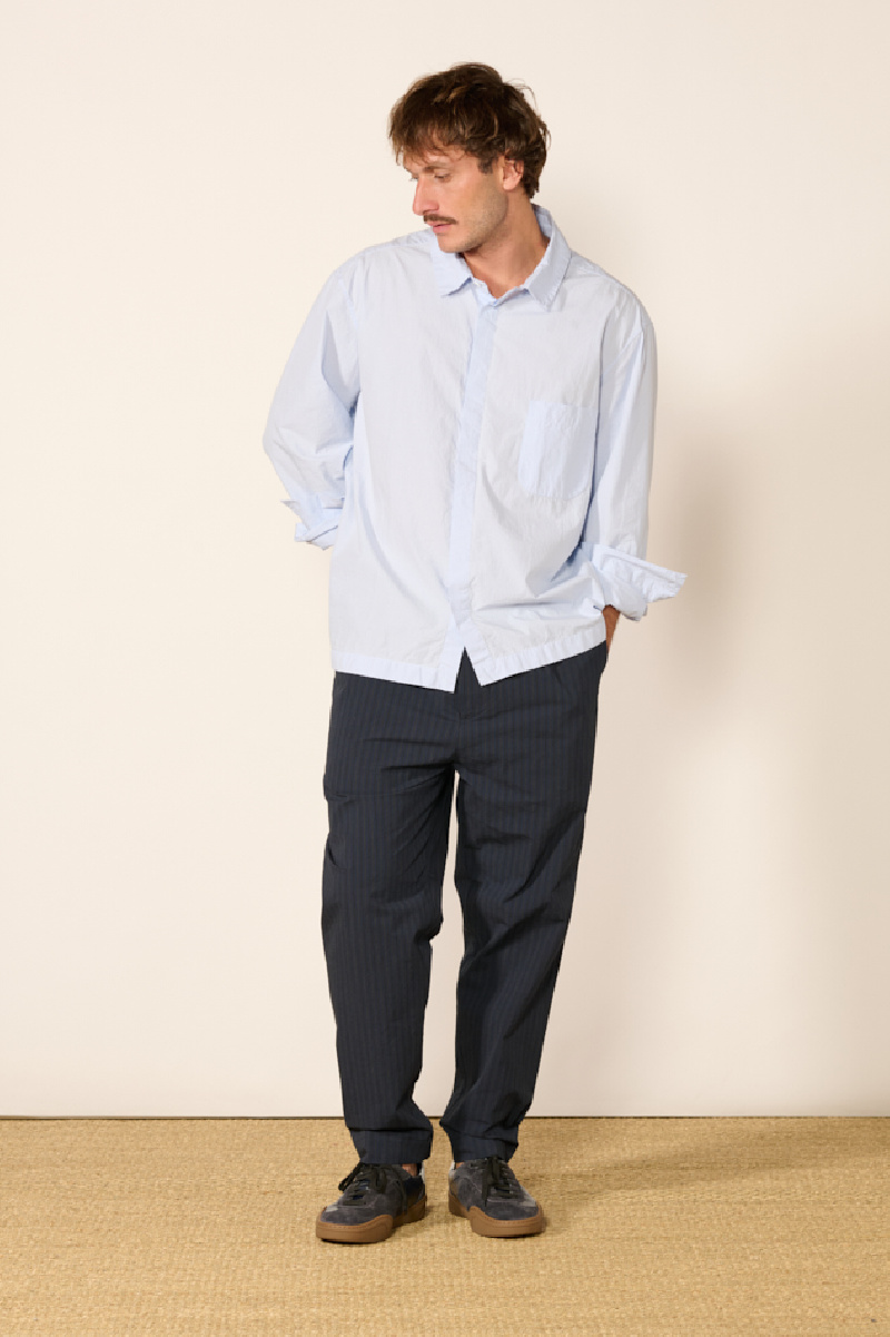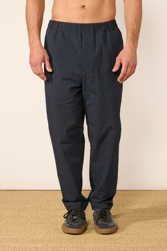 Pantalon Niko à fines rayures en coton navy de la marque Bergfabel.