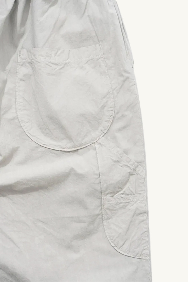 Inspiré des pantalons de peintre japonais, il présente une coupe facile à porter avec une jambe ample longueur cheville, des poches arrondies et des poches latérales fonctionnelles. Sa taille ajustable par cordon assure un confort optimal au quotidien.
