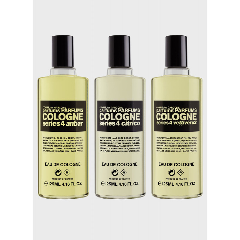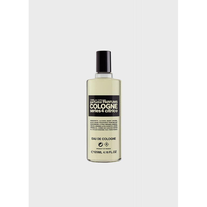 Parfum Comme des Garçons, notes : orange amère, bergamote, néroli, cèdre, bois de santal, citron.