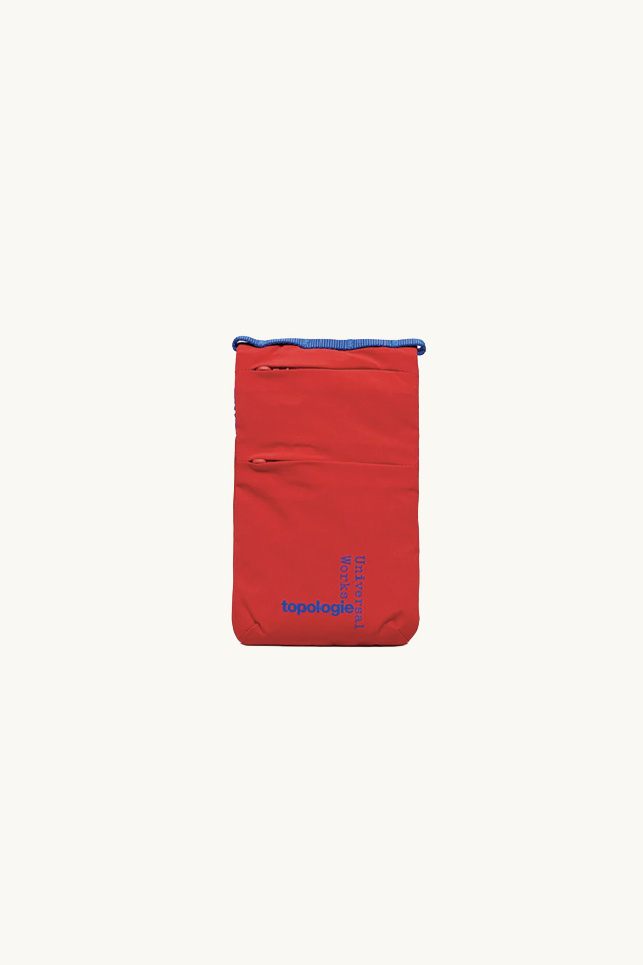 Pochette rouge pour téléphone, issu de la collaboration entre Topologie et Universal Works.