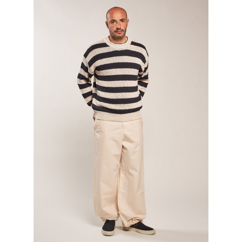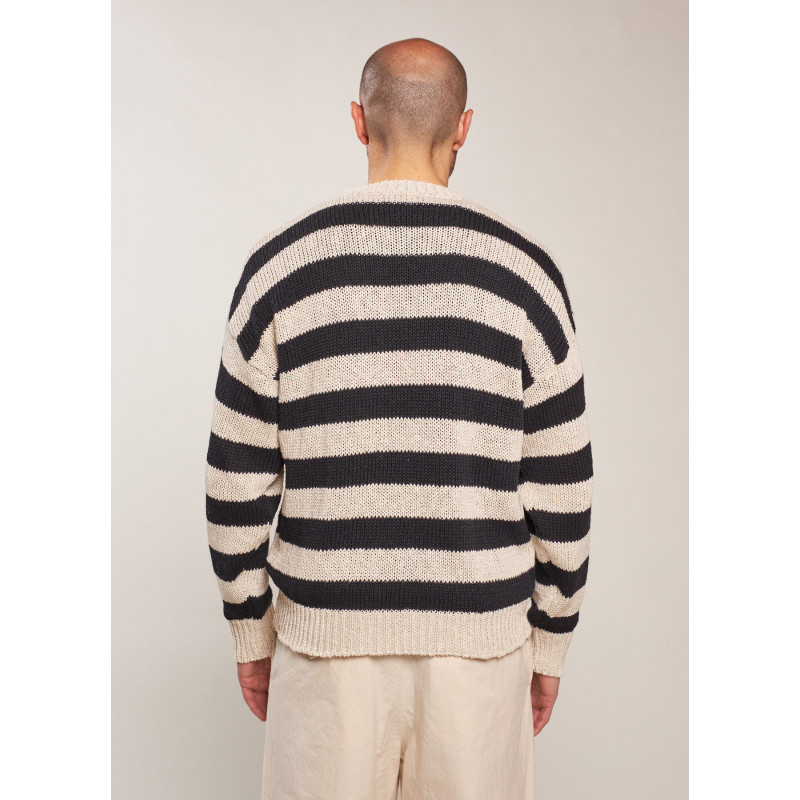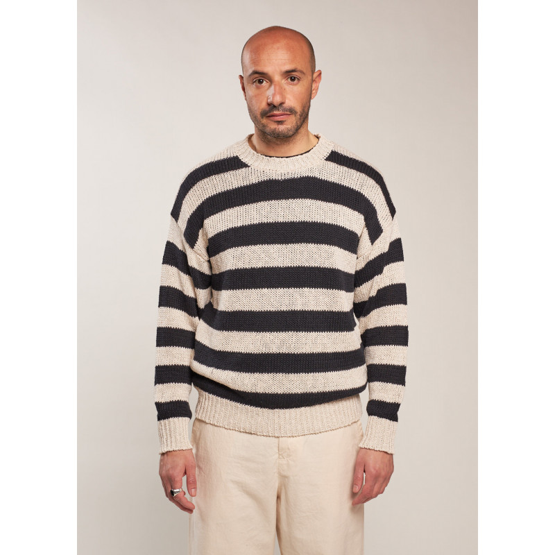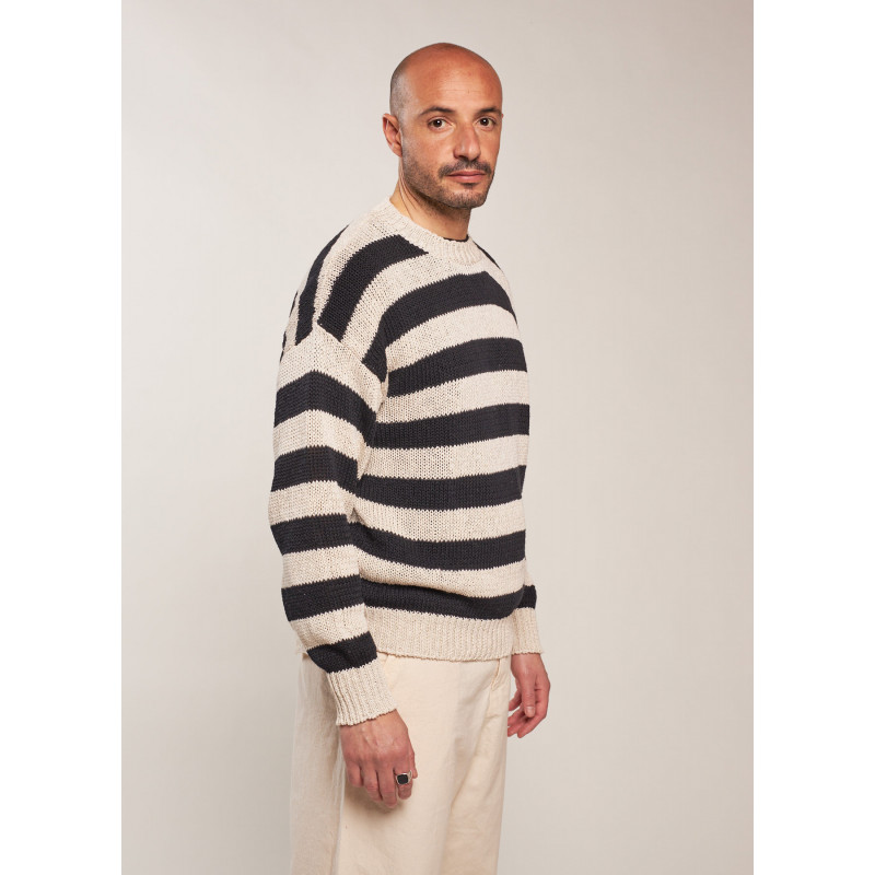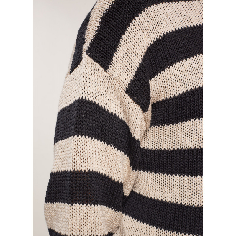 Pull manches longues rayé en maille torsadée, col rond, poignets et ourlet côtelés.