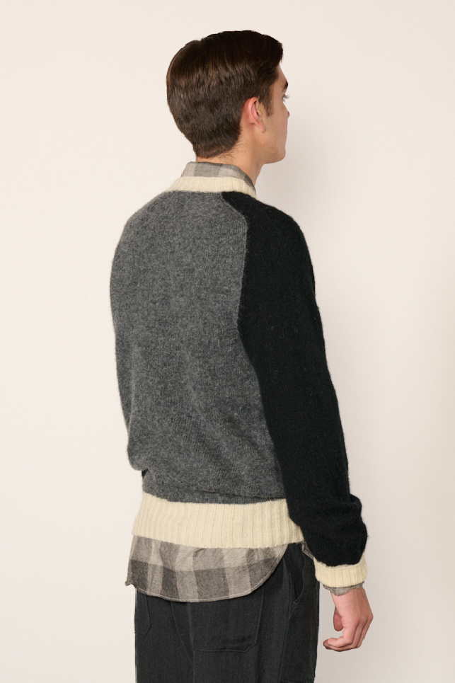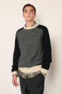 Il présente une coupe droite et décontractée, légèrement ajustée sur l’ourlet grâce aux bords-côtes présents également au col et aux manches.