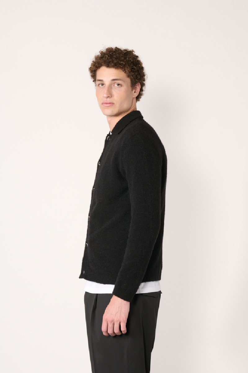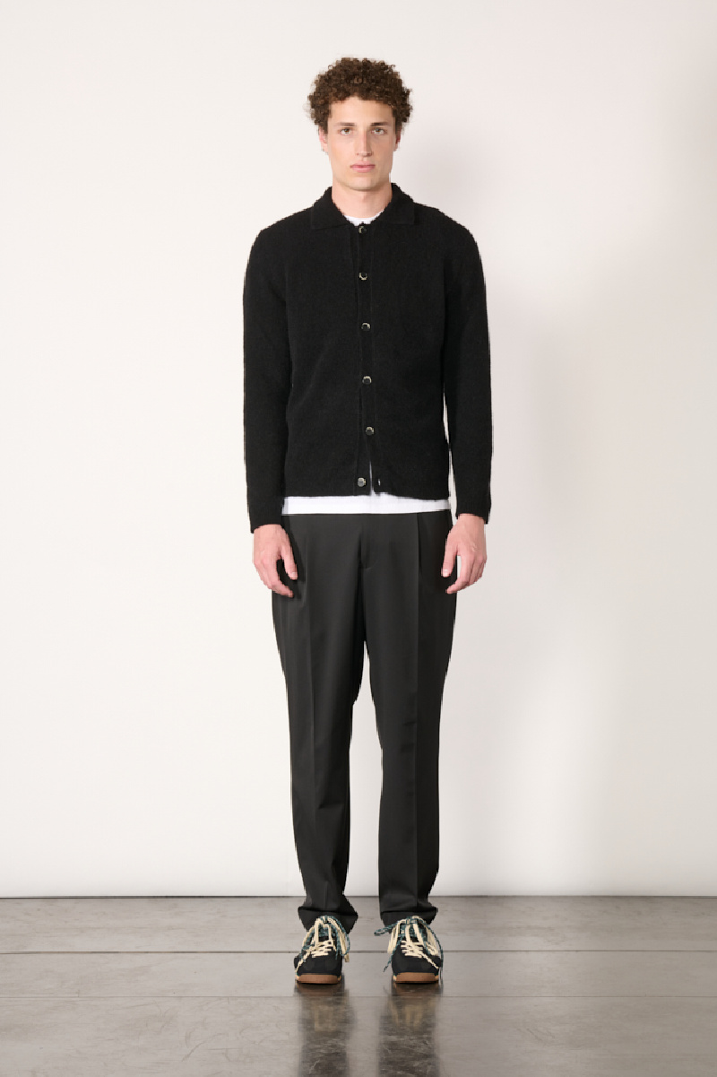 Gilet en mailles noir confectionné en mélange d’alpaga et laine, de la marque Barena.