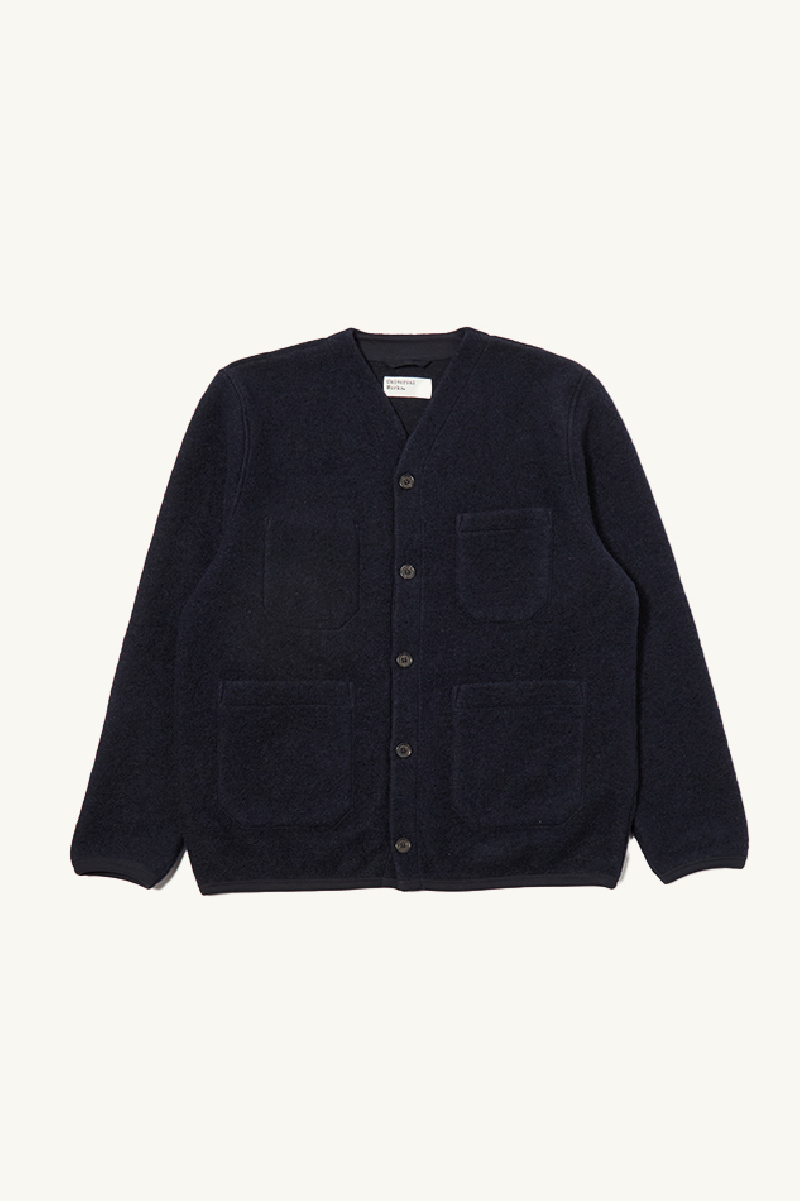 Cardigan en laine polaire navy, de la marque Universal Works.