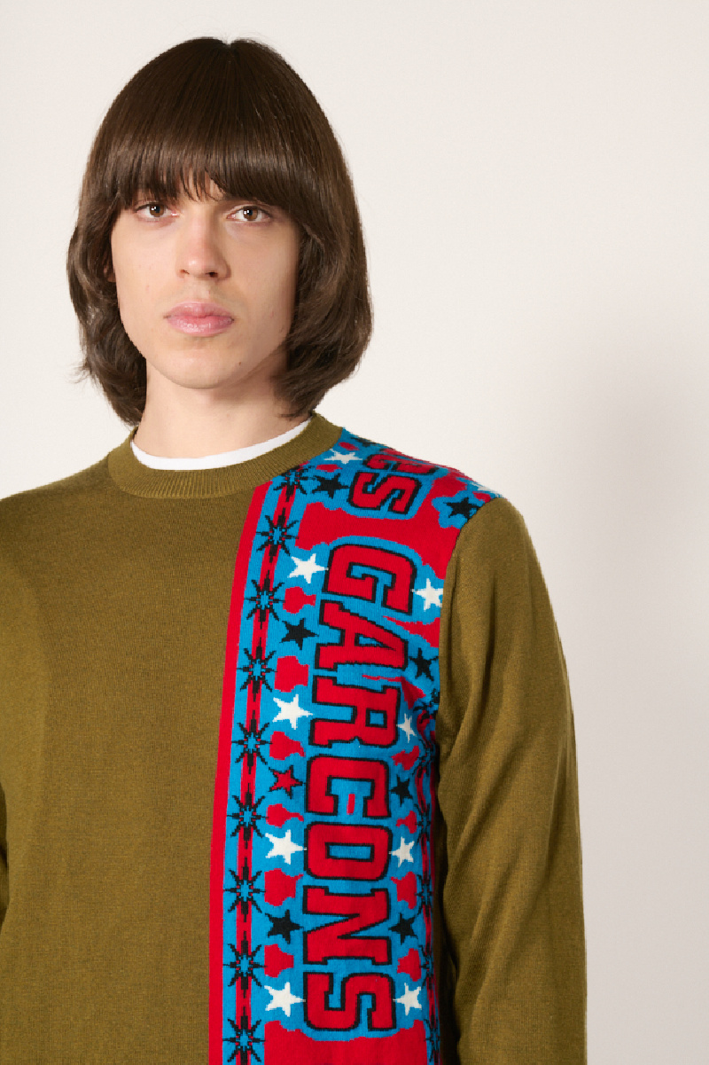 Pull composé principalement d'acrylique, couleur kaki, de la marque Comme des Garçons Shirt.