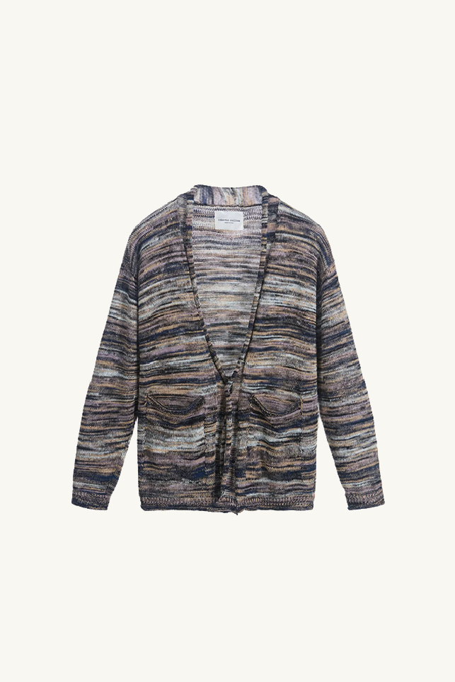 Cardigan confectionné en mélange de lin à imprimé multicolore de la marque Roberto Collina.