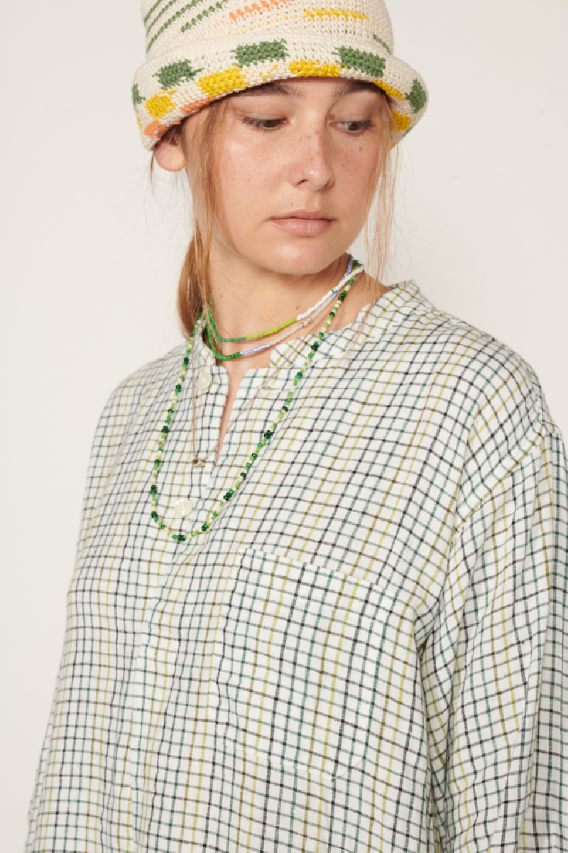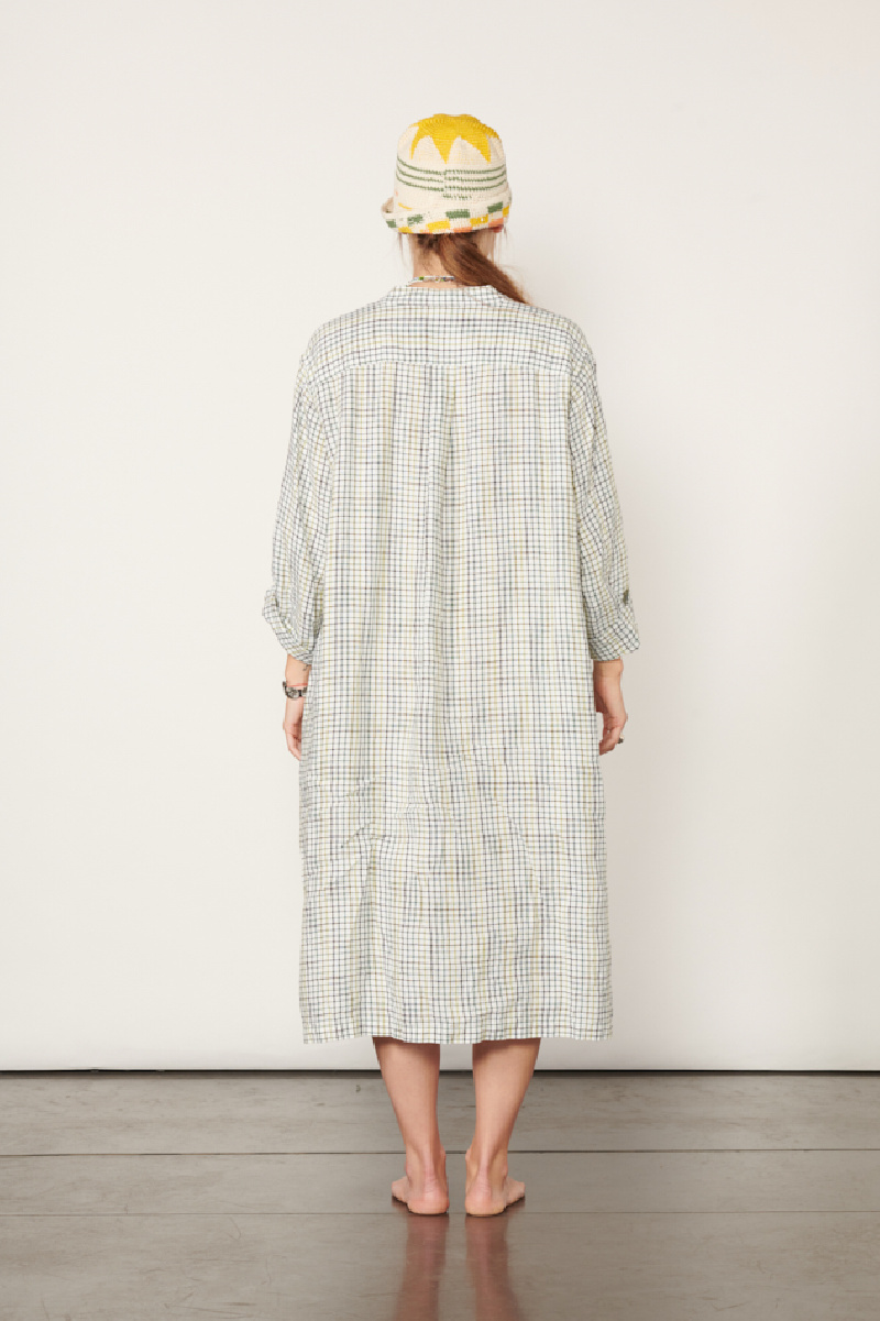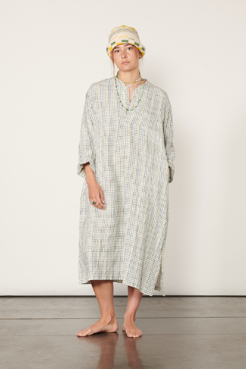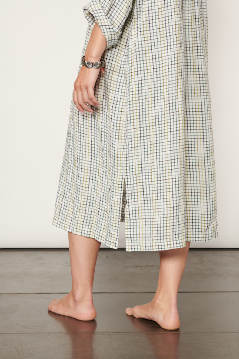 Robe, style chemise Caftan, à col large, en flanelle de coton, à carreaux blanche et verte, de la marque TS.