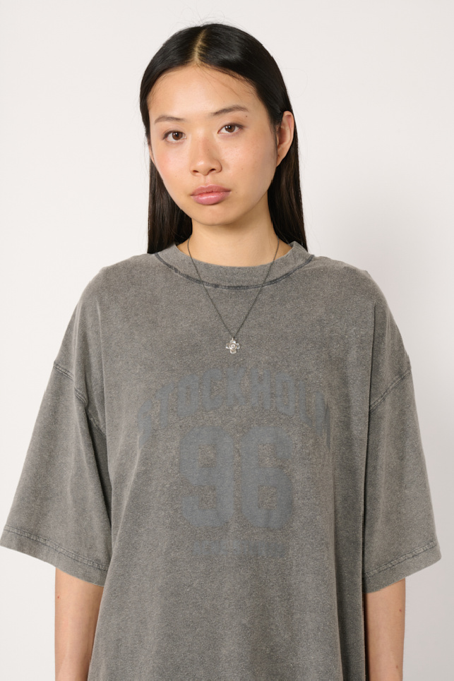 Robe T-shirt confectionnée en jersey de coton anthracite et noir tricoté avec du fil slub, de la marque Acne Studios.