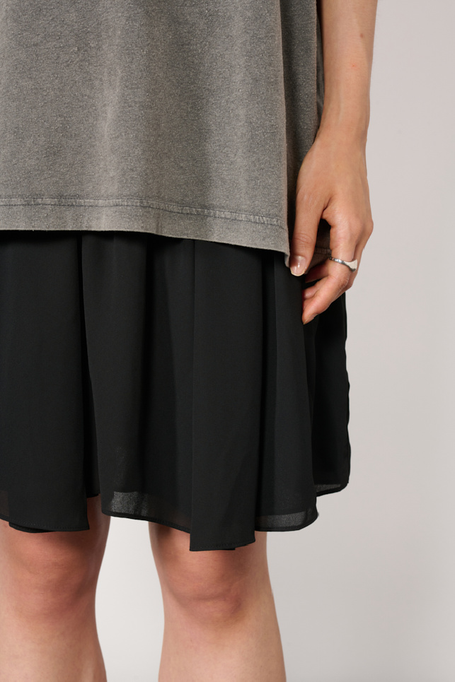 Sa coupe droite, légèrement au-dessus du genou, lui confère une allure moderne et confortable.