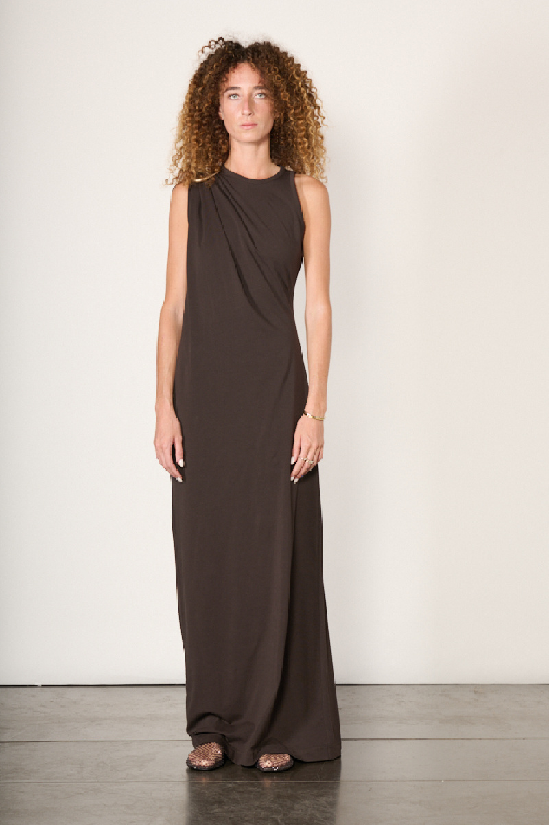 Robe longue Stone Pin confectionné dans un jersey de coton doux marron, de la marque Christopher Esber.