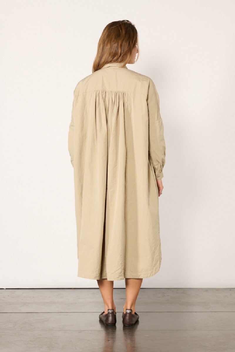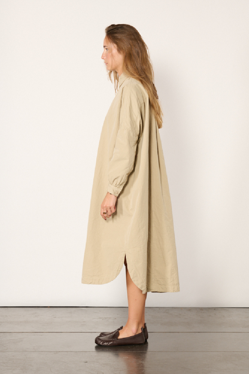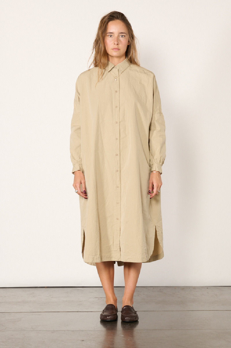 Robe longue Yuri, confectionnée en coton beige, de la marque Casey Casey.
