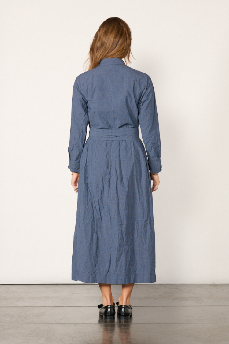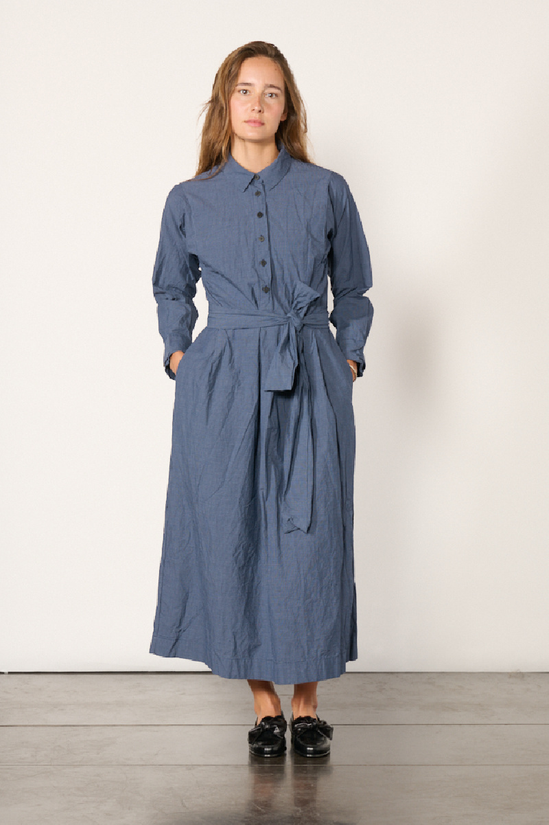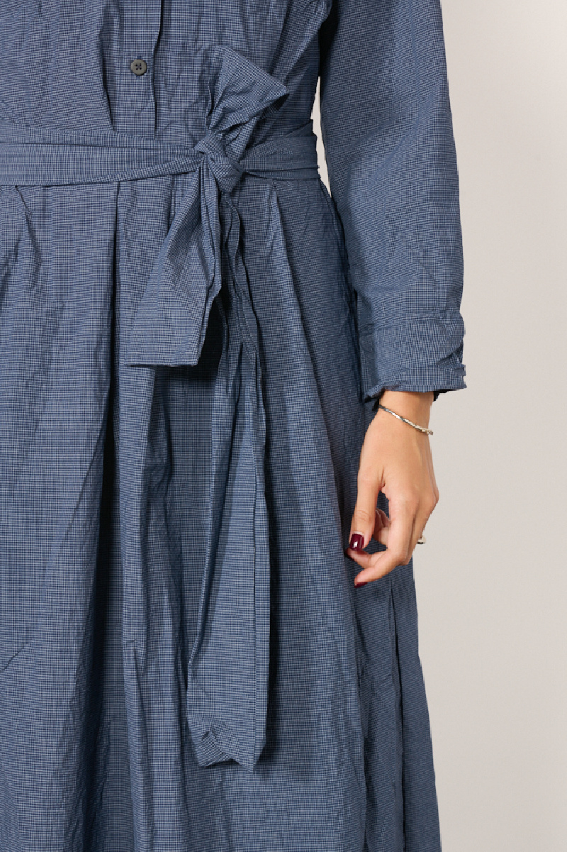 Robe à micro-carreaux, confectionnée en coton froissé bleu de la marque Bergfabel.