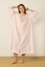 Elle se distingue par une coupe longue et ample avec fermeture boutonnée sur toute la longueur, des épaules tombantes, des manches mi-longues légèrement bouffantes et des poches discrètes.