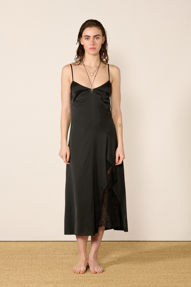 Robe nuisette confectionnée en satin fluide et brillant, de la marque Acne Studios.