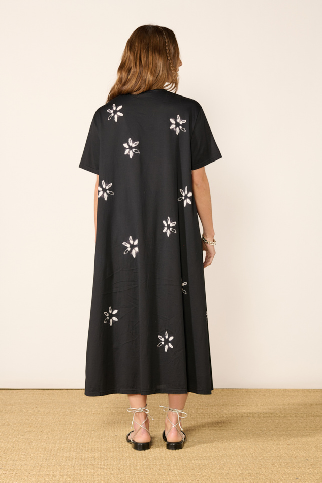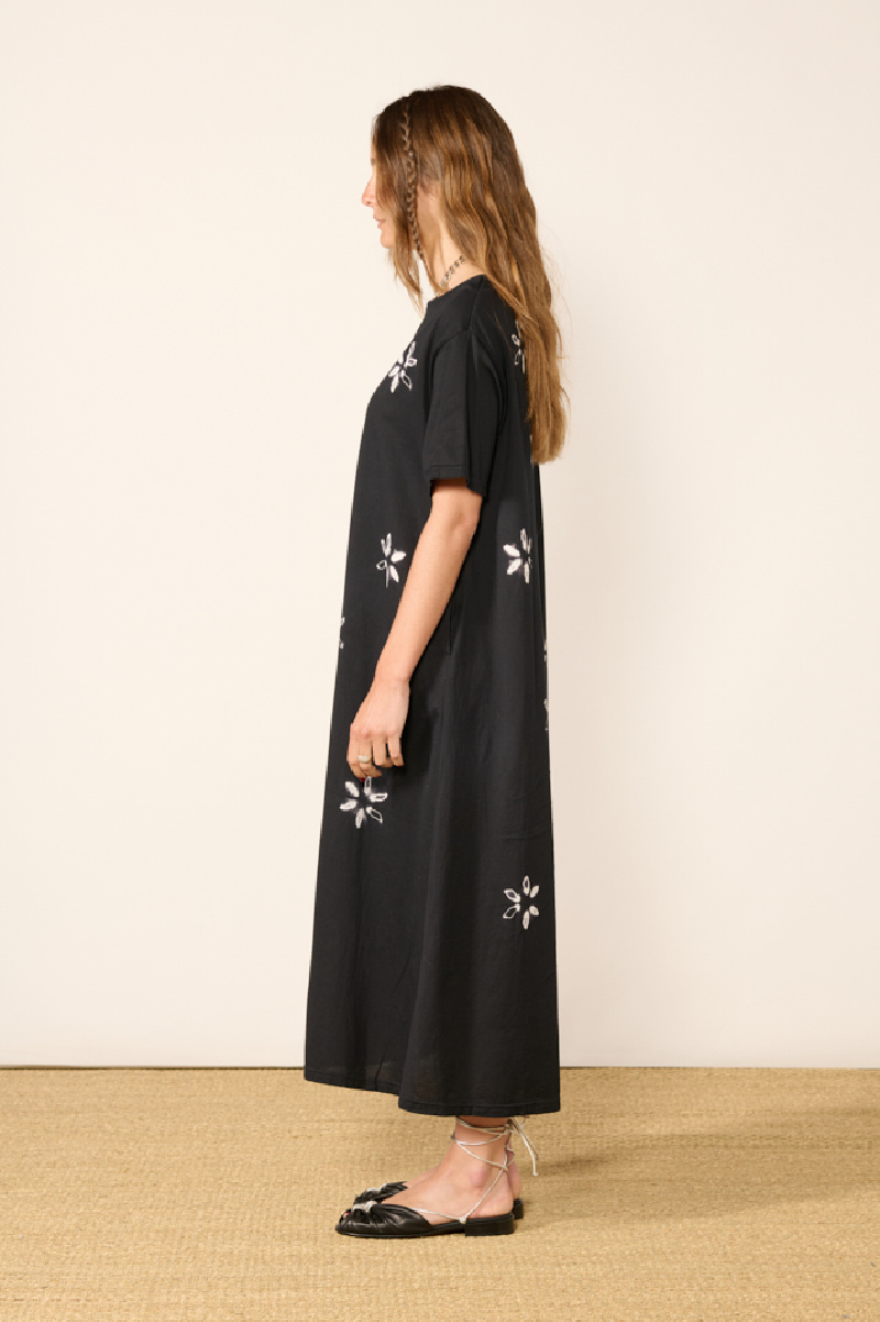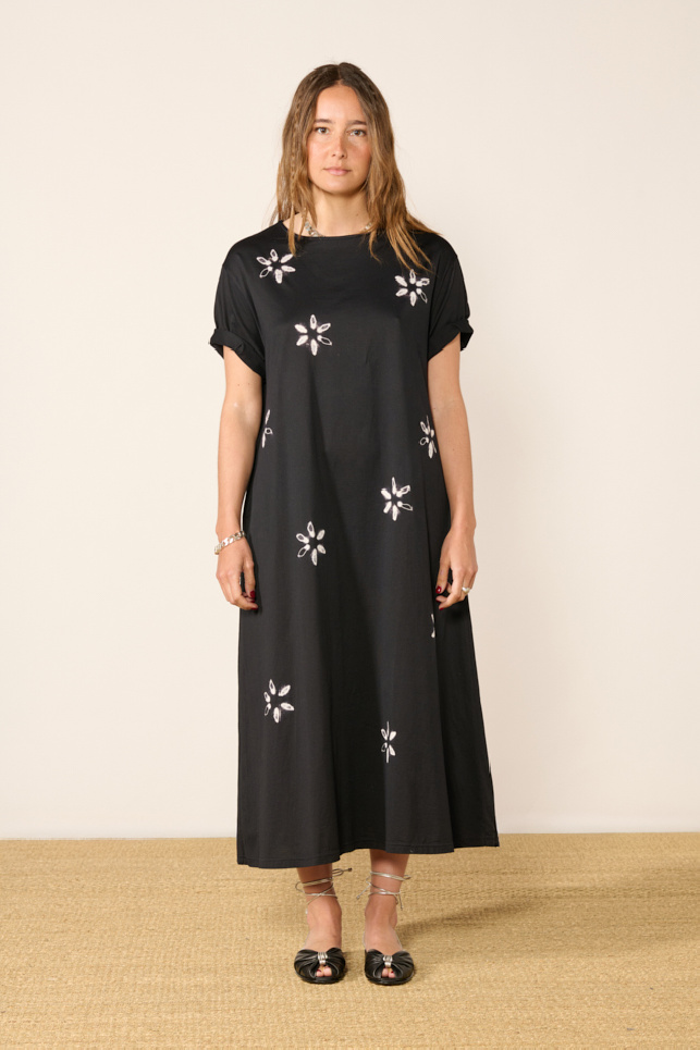 Robe longue, en coton noir de la marque Suzusan.
