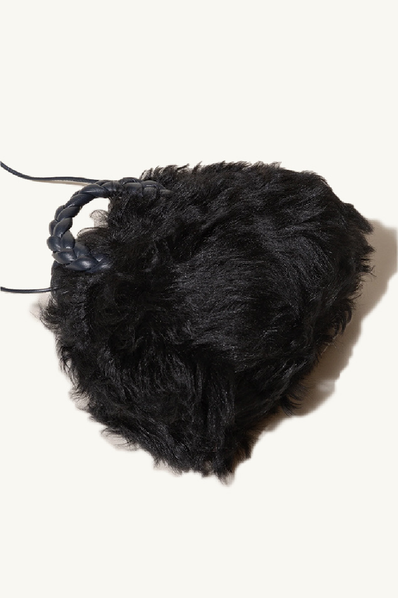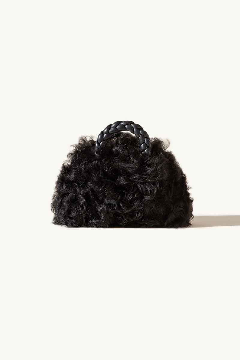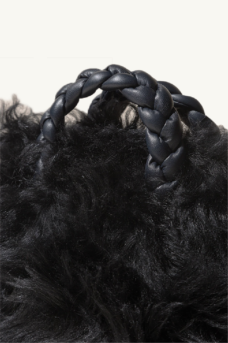 Sac à main confectionné en poils de mouton bouclés et cuir d'agneau noir, de la marque Hereu.