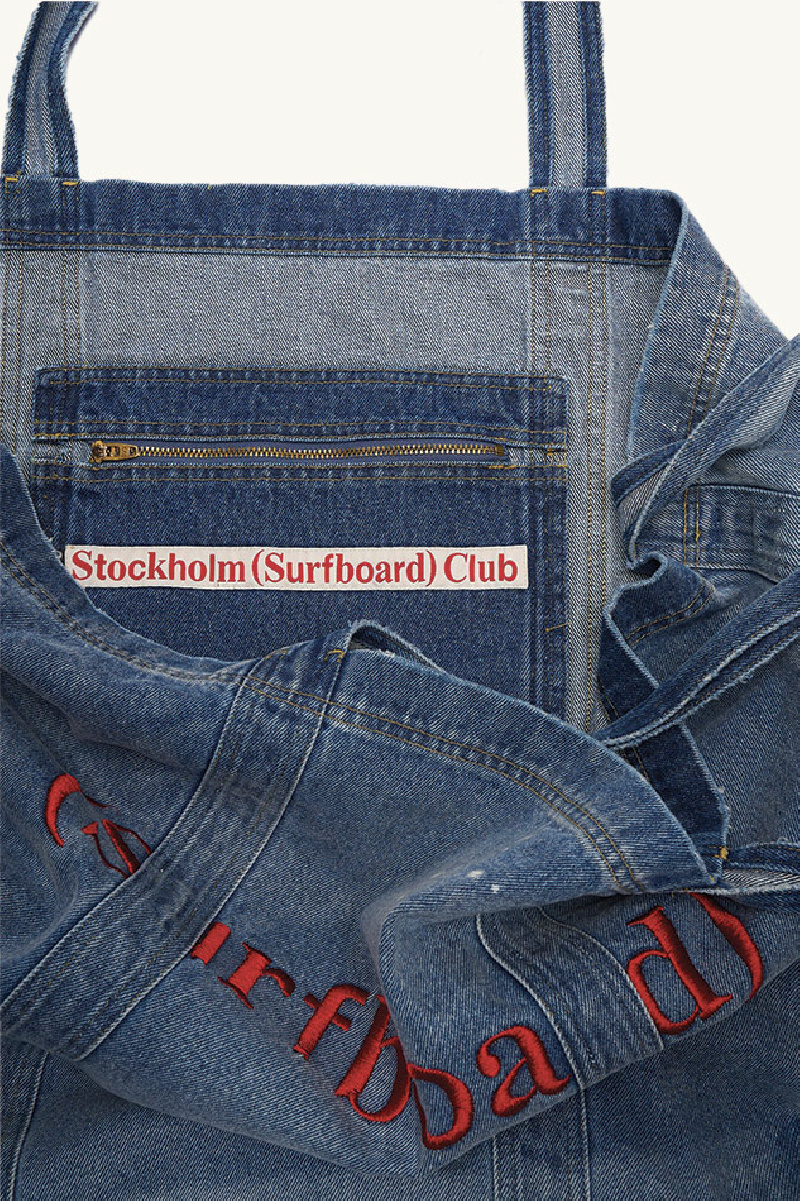 Tote bag en denim bleu délavé de la marque Stockholm Surfboard Club.