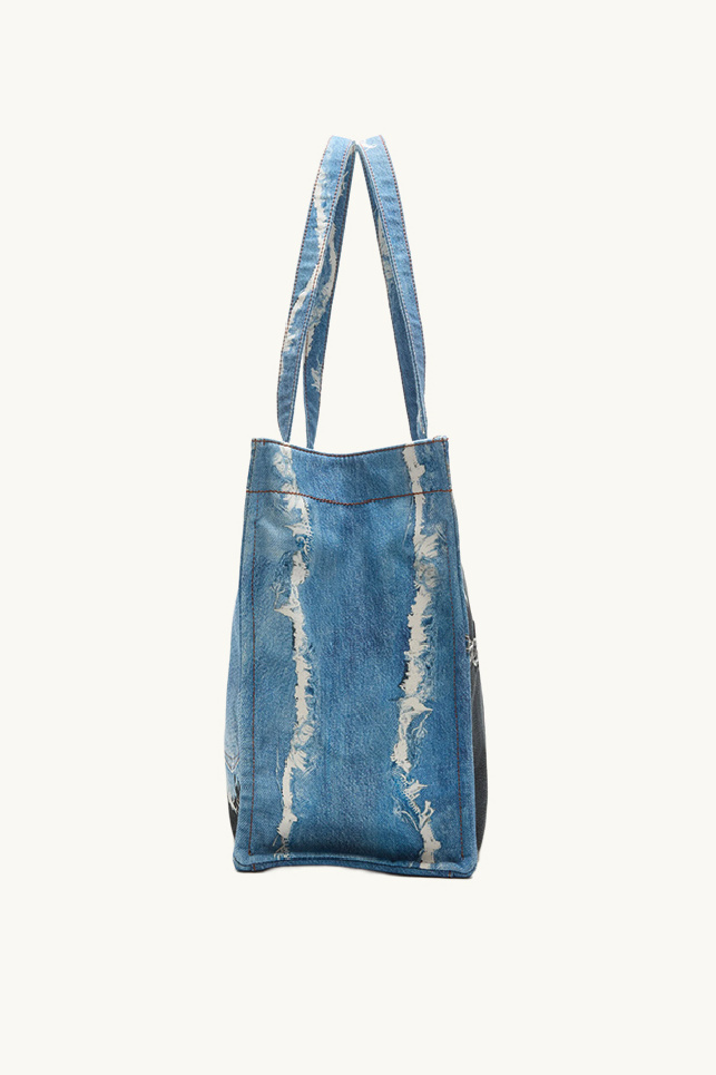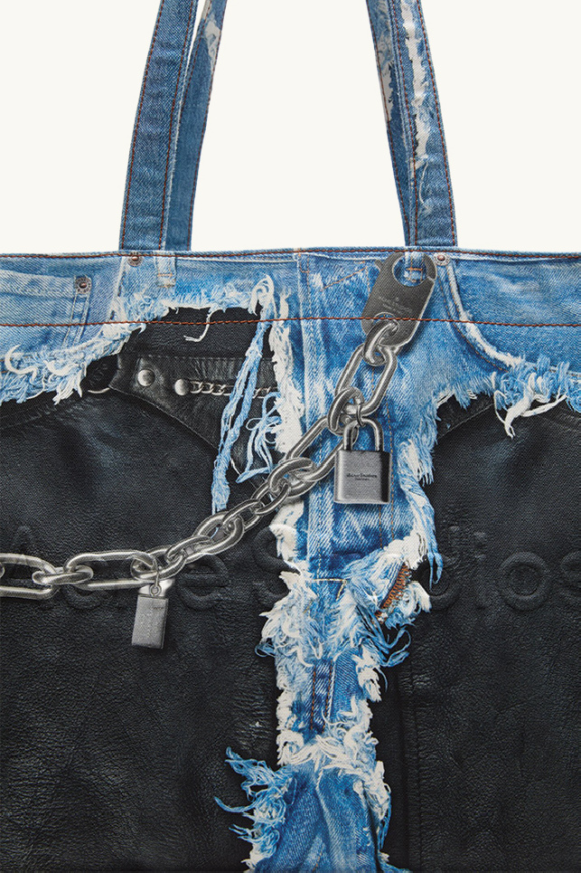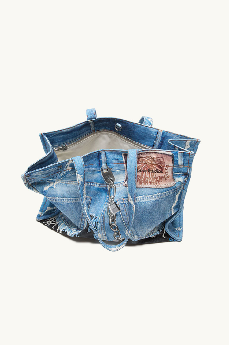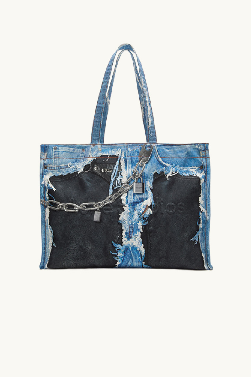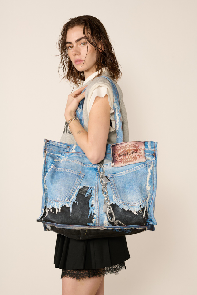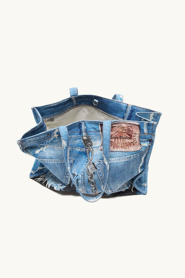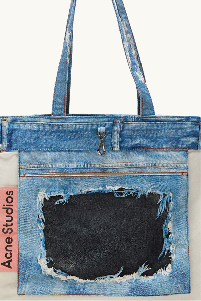 Sac fourre-tout confectionné dans une toile de coton en trompe-l’oeil impression denim, de la marque Acne Studios.