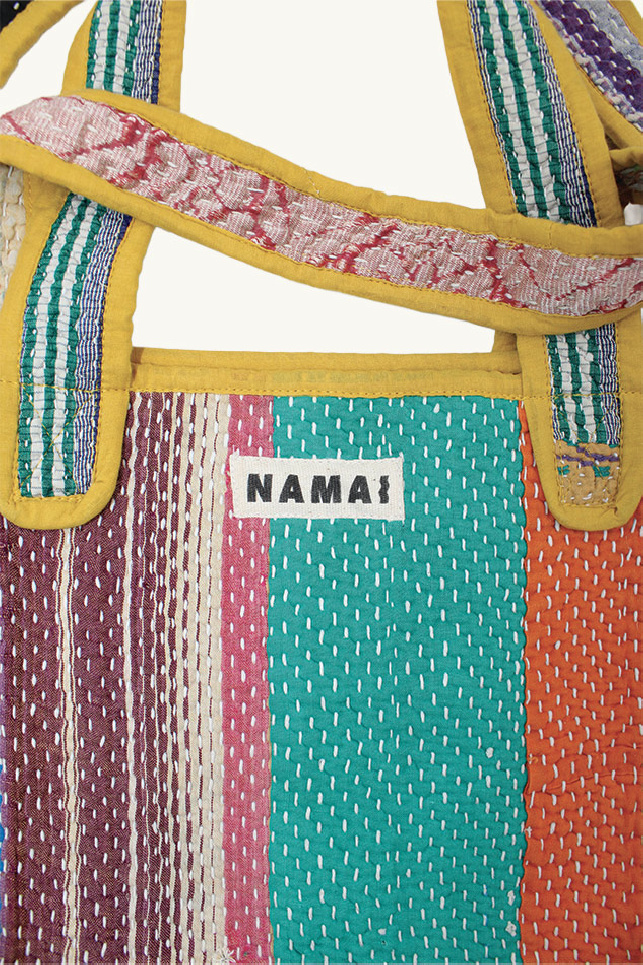 Tote bag confectionné à partir de quilts Kantha vintage, de la marque Namai Studio.