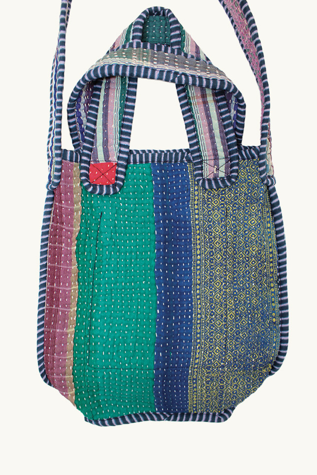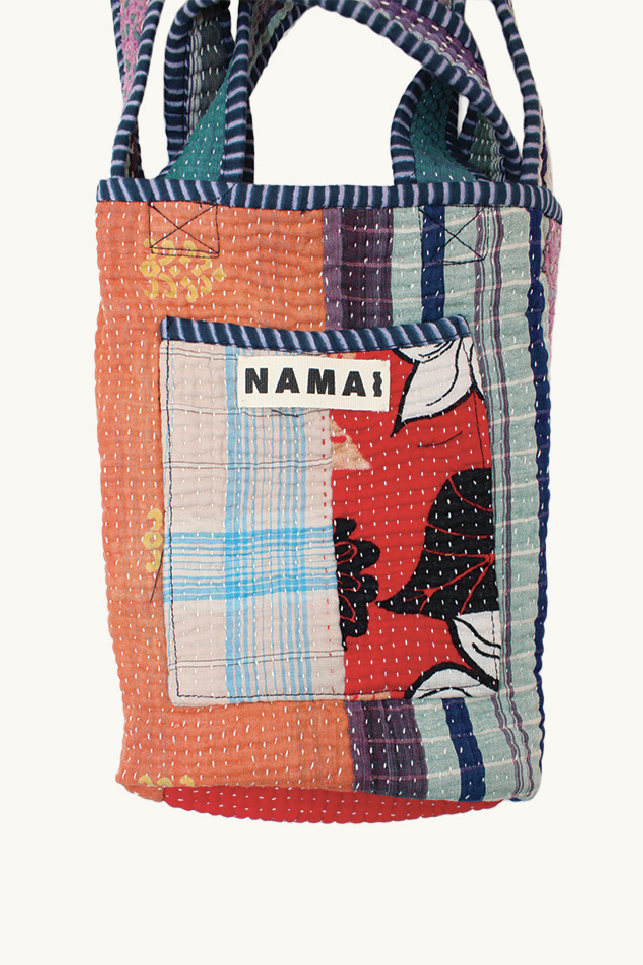 Mini Tote bag confectionné à partir de quilts Kantha vintage, de la marque Namai Studio.