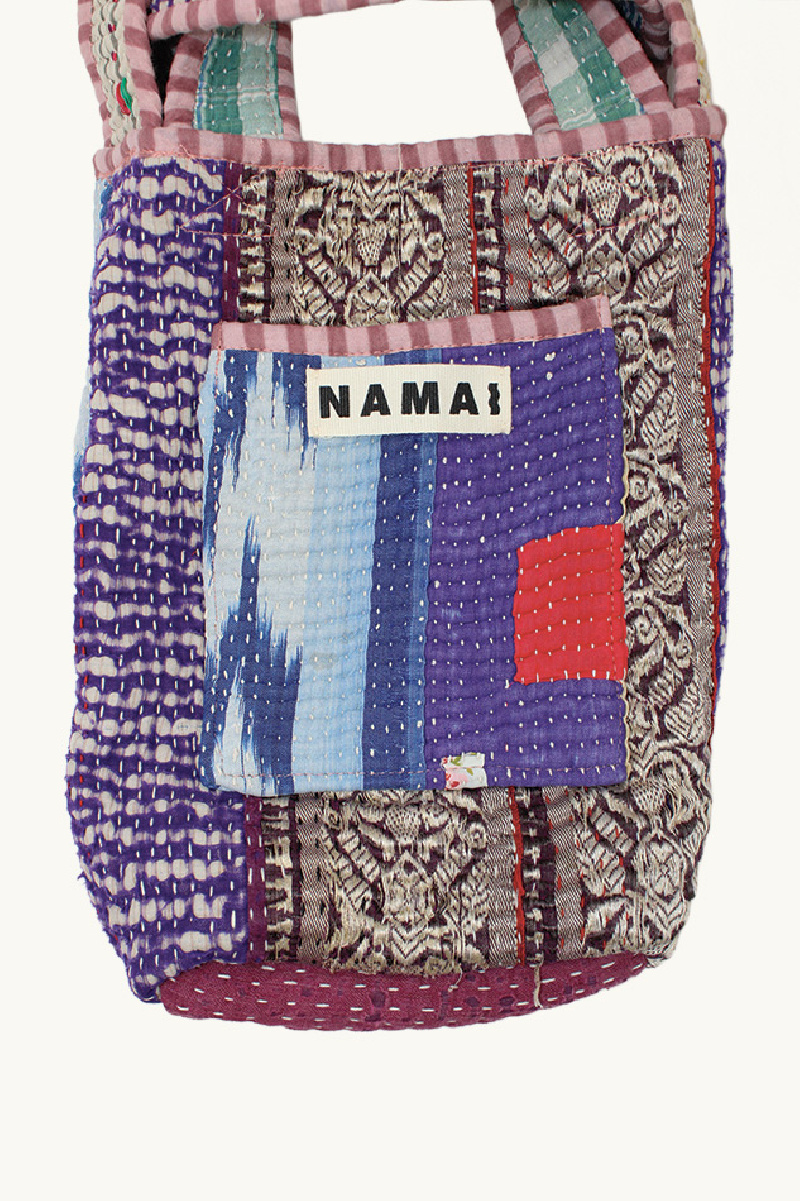 Mini Tote bag confectionné à partir de quilts Kantha vintage, de la marque Namai Studio.