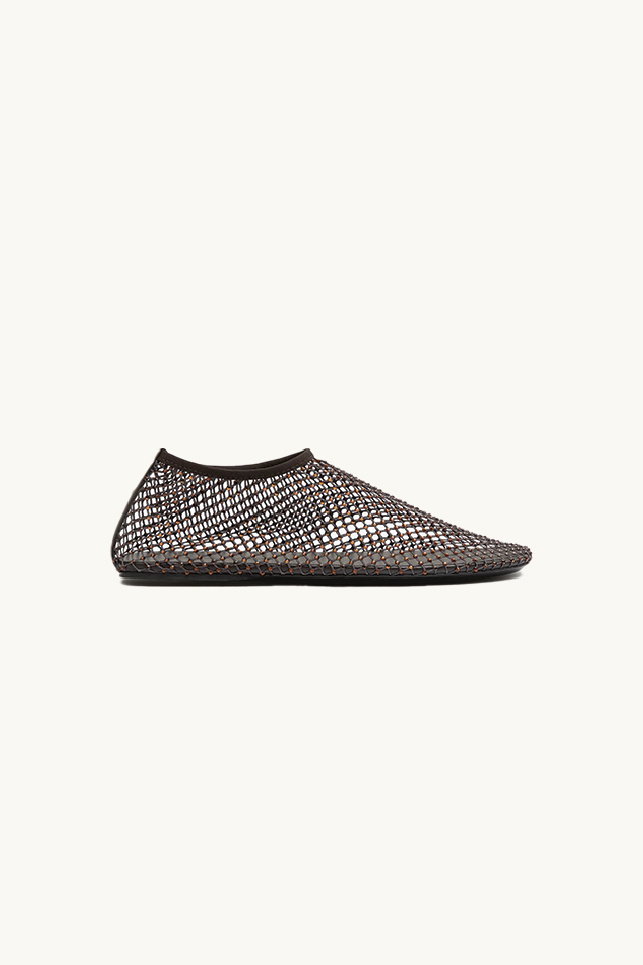 Cette ballerine à enfiler incarne le raffinement de l’artisanat italien. Confectionnée en mesh souple et léger, elle se distingue par des cristaux Swarovski en verre marrons réalisés à la main.