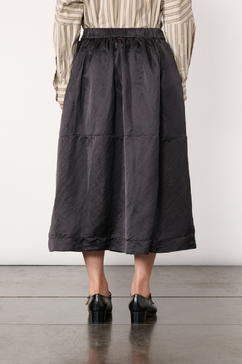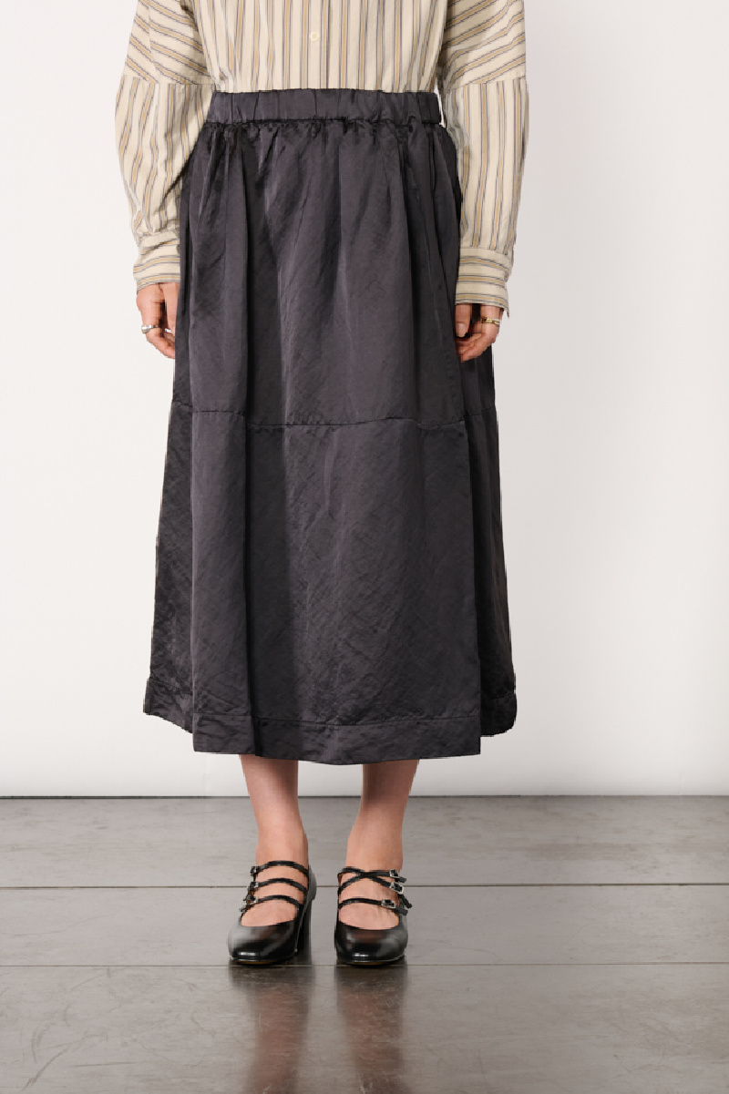 Jupe bouffante en satin lavé et viscose, couleur bleu nuit, de la marque Casey Casey.