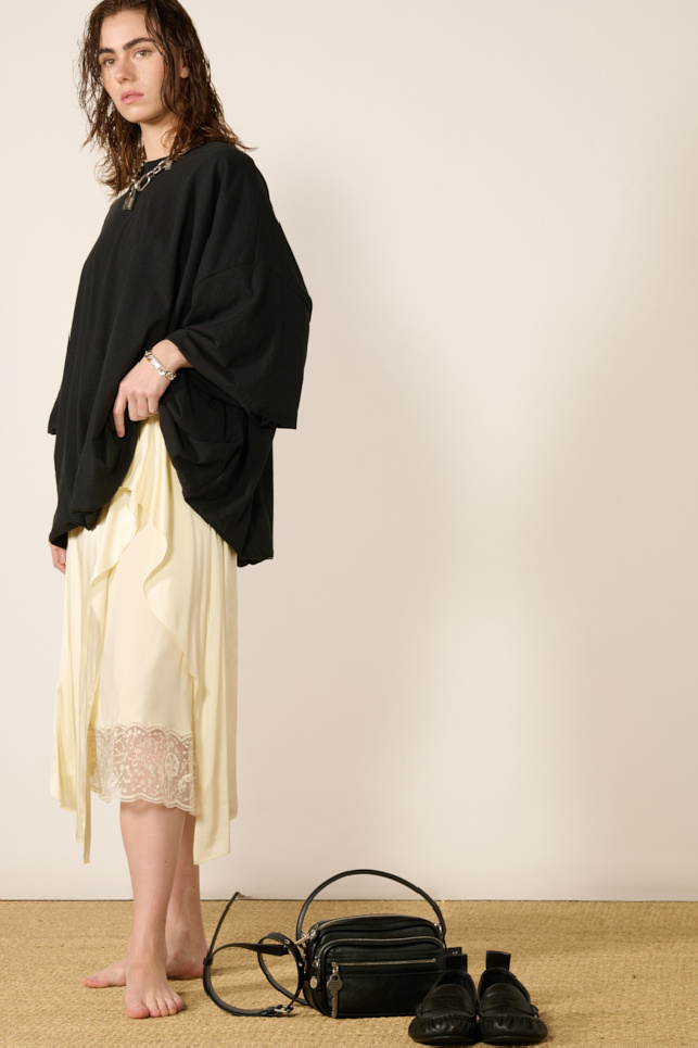 Jupe en satin couleur crème de la marque Acne Studios.