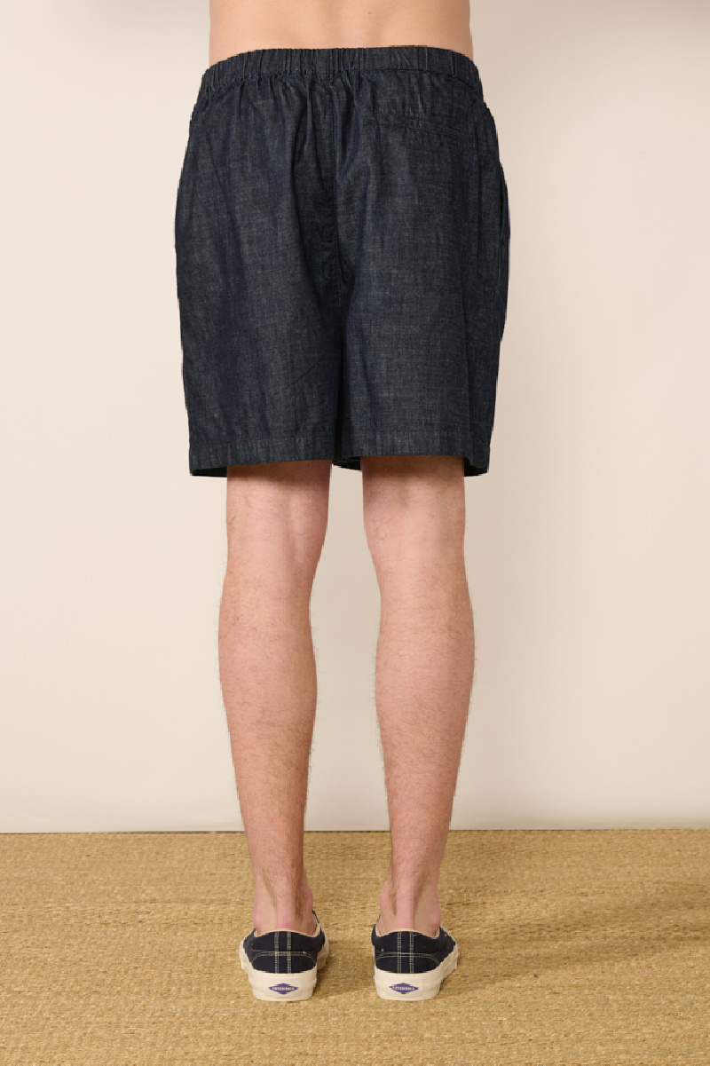 Short confectionné en denim bio lavé bleu foncé, de la marque Acne Studios.