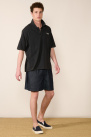 Il offre une coupe décontractée agrémentée d’un noeud brodé ton sur ton sur l’ourlet, une taille élastiquée avec boutons sigles et fausse braguette, des poches latérales dans les coutures et une poche arrière.