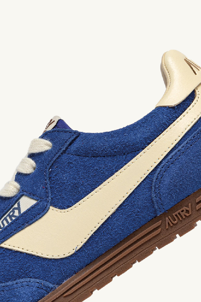 Baskets Windspin en daim doux à effet « used » et cuir Bic et Rutabaga, nouveauté de la marque Autry.