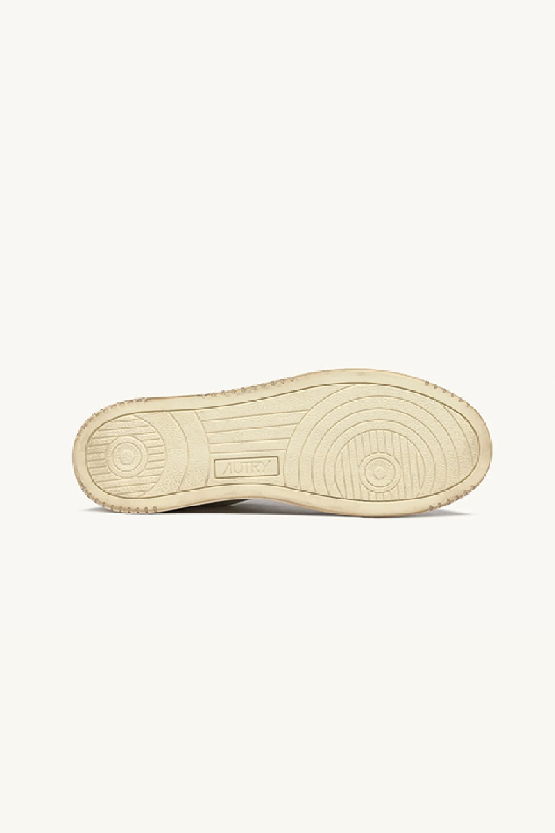 Baskets Autry, modèle Super Vintage Low, en cuir blanc, vert et noir, à effet vieilli.