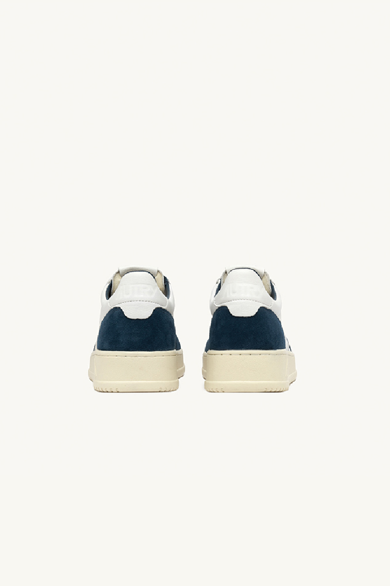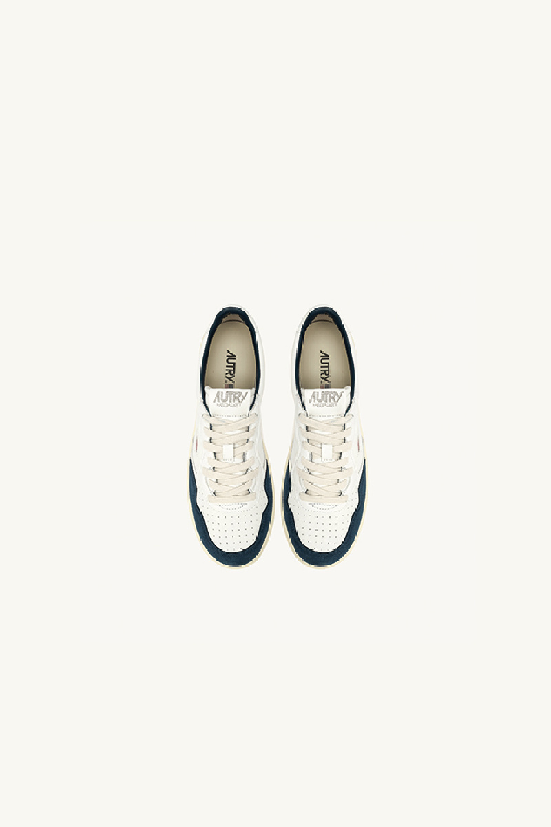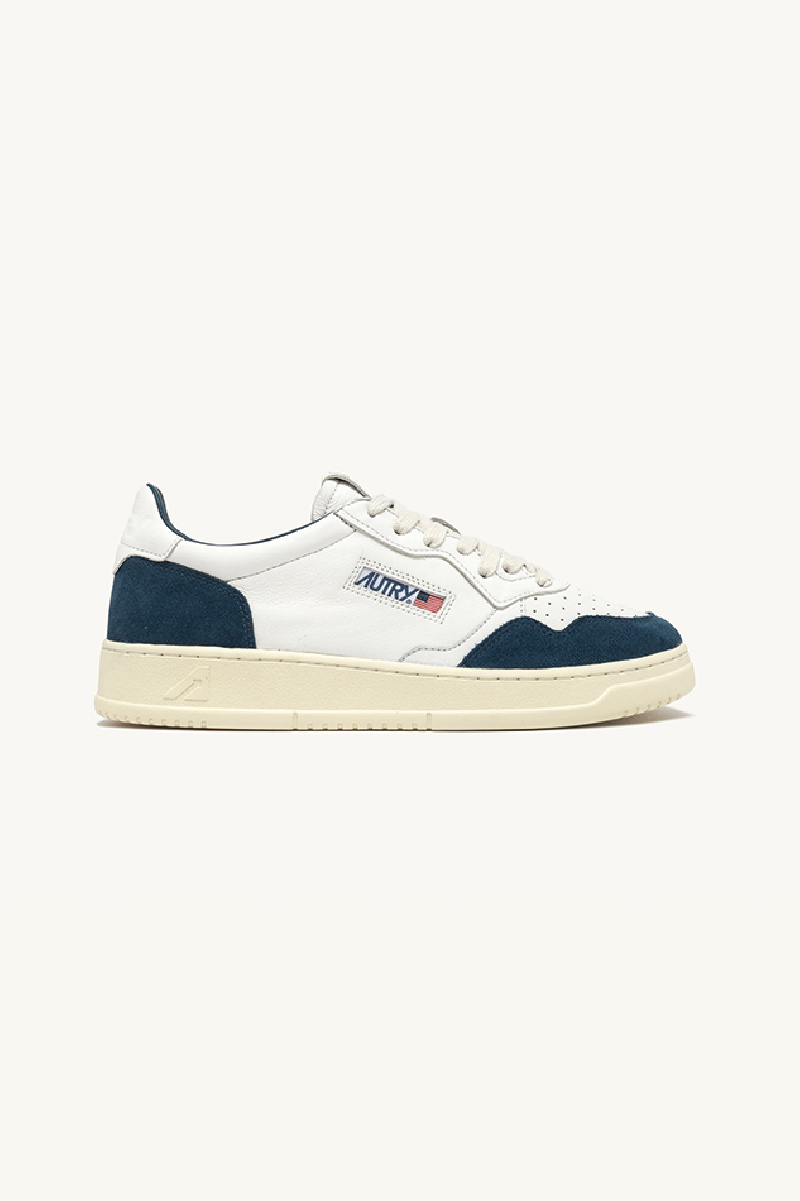 Paire de baskets AUTRY, modèle Medalist low, en cuir blanc et daim bleu capri.